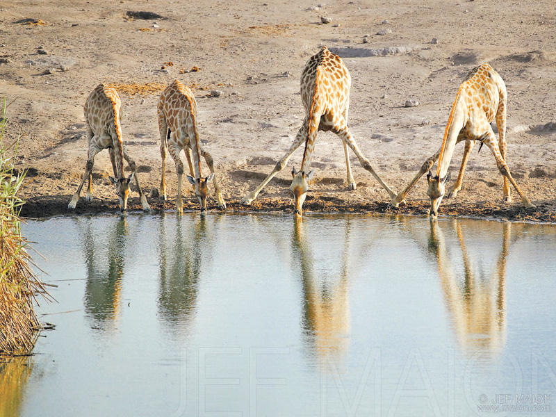 كان فيليب بندر السنة الماضية في منتزه إيتوشا الوطني في ناميبيا. كان يجلس في حافلة للسياح، مراقباً زرافة تشرب الماء من بركة قريبة.يخبر: {فكرت: هذا أمر مذهل وغريب! لا شك في أن نقل الماء صعوداً عبر هذا العنق الطويل ليس سهلاً}.