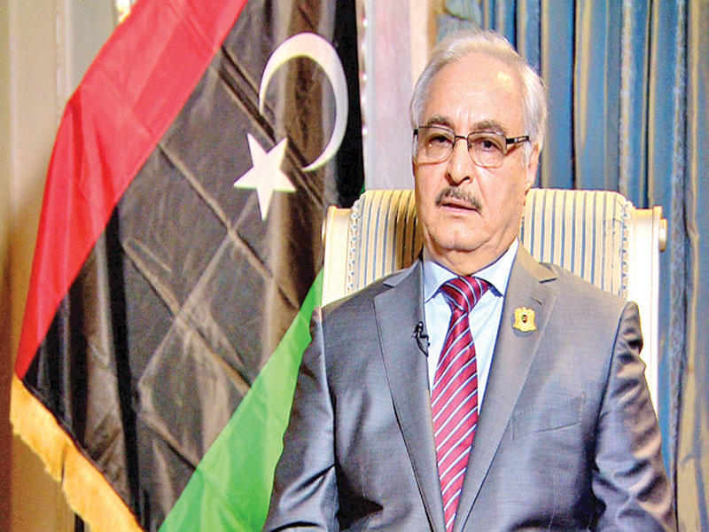 وأكد الرئيس المصري ضرورة دعم حفتر الموالي للحكومة الليبية المعترف بها دوليا ومقرها طبرق، بشرق البلاد، في الحرب ضد المتشددين، قائلا: «إذا ما تم تقديم السلاح والدعم للجيش الوطني الليبي، فإنه بإمكانه القيام بالمهمة أفضل من أي جهة أخرى، وأفضل من التدخل الخارجي الذي قد يؤدي لخطر التورط في وضع قد يخرج عن السيطرة». وشدد السيسي على أن مصر تضغط على حكومة طبرق لتقبل بحكومة الوحدة الوطنية التي تدعمها الأمم المتحدة.ولفت إلى أن العالم يحتاج إلى التحرك بشكل سريع لتحقيق الاستقرار في كل دول المنطقة التي لم تسقط بعد في الفوضى، لمواجهة التهديدات للأمن العالمي والسيطرة على أزمة المهاجرين، وتساءل عما سيحدث إذا ما كان يتعين على أوروبا التعامل مع موجة من المهاجرين تعادل مثلي أو ثلاثة أمثال الموجة الحالية.وقال السيسي: «هناك خمسة أسئلة تجب الإجابة عنها قبل القيام بعمل عسكري، وهي: كيف يمكن الدخول إلى ليبيا والخروج منها؟ ومن سيقوم بإعادة تأسيس الجيش والشرطة؟ وكيف يمكن حماية المدنيين خلال العملية؟ وما إذا كان التدخل سيلبي احتياجات كل الليبيين؟ ومن سيعيد بناء البلاد»؟
