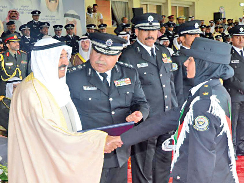 تفضل سمو الأمير الشيخ صباح الأحمد بتوزيع الجوائز والشهادات على المتفوقين من الخريجين والخريجات من أكاديمية سعد العبدالله للعلوم الأمنية.