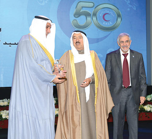 رعى سمو الأمير احتفال «الهلال الأحمر» باليوبيل الذهبي، وأكد الساير في كلمة له بالمناسبة أن الجمعية ساهمت في جعل الكويت منارة للعمل الإنساني، معلناً إطلاق حملة لدعم «مضايا» السورية.