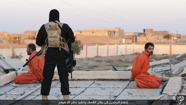 واستخدم التنظيم الذي نشر الصور على مواقع التواصل الاجتماعي ثلاث طرق لإعدام ضحاياه، وهم يرتدون بدلات السجناء البرتقالية.وفي بيان مقتضب قال التنظيم «نفذت الشرطة القضائية أحكام إقامة حد الردة الصادرة عن المحكمة الإسلامية في مدينة الفلوجة بحق عدد من المرتدين بعد إدانتهم بالتجسس والتخابر لصالح الحكومة الرافضية».وصيغ البيان بطريقة تشبه صياغة الأخبار الحكومية التي تصف الظروف التي أدت إلى اعتقال كل من الضحايا الستة.تظهر الصور مقاتلي التنظيم ملثمين ويرتدون تجهيزات قتالية كاملة، وينفذون الإعدام في مواقع قالوا إنها تعرضت للقصف. وقتل أربعة من الضحايا بإطلاق النار على الرأس، اثنان من مسدس، والآخران بواسطة سلاح رشاش، بينما أعدم شخص آخر بواسطة تفجير قنبلة علقت برقبته، والآخر قضى نحراً بالسكين.ولاتزال مدينة الفلوجة التي تبعد 50 كلم عن مركز محافظة بغداد المعقل الرئيسي للتنظيم خارج مدينة الموصل.وقد فرض التنظيم سيطرته على معظم أنحاء محافظة الأنبار، لكنه فقد السيطرة على أجزاء شاسعة منها بعد عمليات عسكرية كبرى تم خلالها تحرير كبرى مدنها الرمادي.والفلوجة حالياً شبه معزولة عن مناطق سيطرة التنظيم، ويعتقد أن الجهاديين يواجهون تحديات كبرى لايصال الإمدادات إليها.ويبدو أن الخلافات في داخل المدينة تتصاعد وبدأ التنظيم يخشى من رغبة السكان في التعاون مع الحكومة التي تحشد قواتها لشن هجوم كبير لتحريرها.