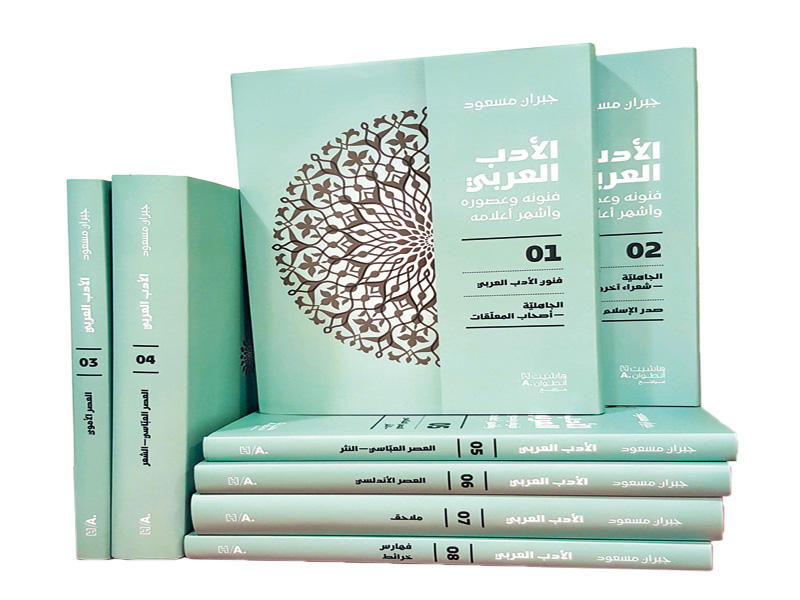 صدر عن {دار نوفل} - {هاشيت أنطوان} العربية للنشر موسوعة من ثمانية مجلدات، للأديب جبران مسعود، عنوانها {الأدب العربي فنونه وعصوره وأشهر أعلامه}.