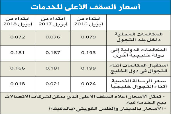 وأكد المصدر ان القرار الصادر بهذا الشأن حدد في مادته الثالثة انه يجب على جميع شركات الاتصالات المتنقلة المرخصة بالكويت إرسال رسائل نصية لعملائها تبلغهم بأسعار خدمات التجوال المطبقة أثناء تجوالهم بين دول مجلس التعاون لدول الخليج العربية. وأوضح، أن الأسعار الجديدة خصوصا المكالمات الصادرة (بالنسبة لدولة الكويت) ستكون هناك زيادة طفيفة عن الأسعار الحالية، وذلك لأن دول الخليج حددت هذه الأسعار بالإجماع، على ان يتم خفضها بشكل تدريجي خلال العامين المقبلين، مبينا أن المكالمات الصادرة (في الكويت) حاليا تبلغ قيمتها 190 فلسا للدقيقة، والسعر الجديد 193 فلسا، لافتا إلى أن هذه الأسعار تم الاتفاق على أن تكون في أبريل 2017 بمبلغ 181 فلسا للدقيقة، و166 فلسا في أبريل عام 2018. وأشار إلى أن الأسعار الجديدة تشمل أيضا خدمة الرسائل النصية (SMS)، إذ تم تحديدها بـ24 فلسا لجميع المشتركين في مختلف شركات الاتصالات المتنقلة بدول مجلس التعاون الخليجي، كما تشمل التسعيرة التي تم إقرارها خدمة الإنترنت، والتي ستكون 393 فلسا لكل ميغا بايت، مبينا أن هذا القرار يوضح ان عملية أسعار خدمة التجوال تصل إلى 40 في المئة، وهو ما تم الاتفاق عليه بين الدول الخليجية خلال الاجتماع الأخير للجنة وكلاء وزارات البريد والاتصالات وتقنية المعلومات بدول مجلس التعاون الذي عقد أخيرا في الرياض.ونفى المصدر أن تكون وزارة المواصلات هي الجهة التي تحدد الأسعار في السابق، مؤكدا ان شركات الاتصالات الثلاث هي التي كانت تضع الأسعار حسب ما تراه مناسبا لسياستها وتعاملها مع مشتركيها، ما استدعى وجود تنظيم لهذه العملية من خلال لجنة وكلاء وزارات البريد والاتصالات وتقنية المعلومات في دول الخليج العربي، وذلك بهدف تحقيق الفائدة المرجوة لمواطني دول المجلس وتخفيف الأعباء عن المشتركين، لاسيما أن هذا القرار يأتي تنفيذا لما ورد في الاتفاقية الاقتصادية بين دول الخليج بأن تتخذ الدول الأعضاء الإجراءات الكفيلة بتكامل سياسات الاتصالات والبريد وشبكات المعلومات، بما يؤدي إلى تحسين مستوى خدماتها وكفاءتها الاقتصادية، وتقوية الروابط بين مواطني دول المجلس ومؤسساتها الخاصة والعامة.