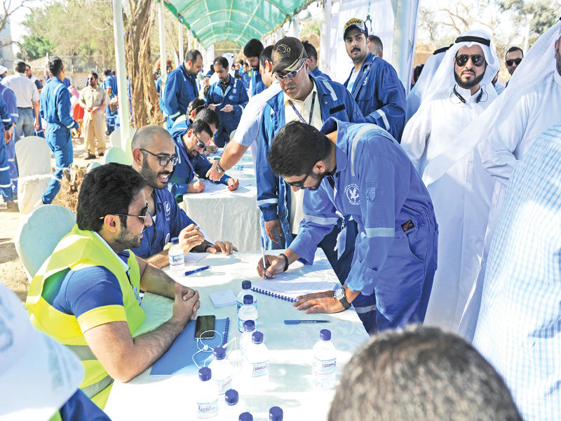 واكد ابل ان من حق النقابات العمالية المطالبة بالحقوق العمالية في اطار قانوني وعقلاني، مستدركا بقوله: لكن لا يحق لهم المطالبة بأمور غير قانونية.وشدد على عدم احقية نائب رئيس مجلس الوزراء وزير المالية وزير النفط بالوكالة ولا مجلس ادارة مؤسسة البترول الكويتية في التفاوض بشأن الغاء البديل الاستراتيجي ولا يجوز لهم استخدامه كورقة مفاوضات.وأوضح ان البديل الاستراتيجي عبارة عن حزمة مشروع واقتراحات بقوانين تناقش داخل لجنة الموارد البشرية البرلمانية وتنتهي بما تتوصل له اللجنة ولا يمكن لاي طرف كان المفاوضة عليه خارج اللجنة.في المقابل، اكد النائب طلال الجلال تأييده لمطالب العاملين بالقطاع النفطي وعدم المساس بحقوقهم ومكتسباتهم نظرا لطبيعة عملهم المختلفة على كافة الجهات الاخرى.وقال الجلال في تصريح صحافي: ادعو الجميع الى تغليب المصلحة العامة والجلوس على طاولة الحوار وتلبية مطالب العاملين بالقطاع النفطي المستحقة، مشددا على ضرورة ان تنزع الحكومة فتيل الازمة من اجل عودة العمل بالقطاع بشكل طبيعي، معلنا رفضه شمول النفط في البديل الاستراتيجي، نظرا لخصوصية هذا القطاع.من جانبه، شدد النائب محمد الهدية على ان القطاع النفطي شريان الدولة قائلا ان سياسة التحدي من الطرفين لن تصب في مصلحة الكويت.وطالب الهدية الحكومة بالجلوس مع المضربين وبحث مطالبهم وعدم الانتقاص مما اكتسبوه في سنوات سابقة، مؤكدا ان من حق المضربين المطالبة بالحقوق عبر الاضراب.و أكد النائب عسكر العنزي دعمه وتأييده لمطالب العاملين بالقطاع النفطي وعدم المساس بحقوقهم ومكتسباتهم، داعيا وزير النفط بالوكالة الى العمل الجاد للوصول الى توافق مع المضربين، لإيجاد حلّ مرض للطرفين وعلى الحكومة التجاوب مع أي حوار يؤدي للوصول الى حل للخلاف وتحقيق المطالَب المستحقة للعاملين.في حين علق النائب يوسف الزلزلة بتصريح مقتضب قائلا: القضية بين الحكومة والمضربين وقرارها النهائي هو ما يتفق عليه الطرفان، مبينا ان كل طرف على اطلاع برغبات واراء الطرف الاخر.من جهته، اعلن النائب عبدالله المعيوف عزمه تقديم طلب لعقد جلسة خاصة خلال الاسبوع الجاري لمناقشة ازمة النقابات العمالية في القطاع النفطي مع قيادات القطاع متضمنة مبادرته المكونة من اربع نقاط والداعي أحد بنودها لإلغاء القرارات الثمانية محل الإضراب واستبعاد قياديي مؤسسة البترول الكويتية نزار العدساني وبدر الشراد.وقال المعيوف في تصريح صحافي بمجلس الأمة أمس: اليوم يعيش البلد ازمة كبيرة وحساسة واذا لم يتم تداركها ستكون مضاعفاتها مؤثرة جداً على الوضع الاقتصادي والاجتماعي والسياسي في البلاد، فاليوم بدأ عمال القطاع النفطي اضرابهم من الساعة الثامنة حتى العاشرة صباحا بعد ان وصلوا الى طريق مسدود.وأوضح المعيوف ان العاملين بالقطاع النفطي لم يقدموا على هذه الخطوة الا بعد وصولهم الى طريق مسدود في التفاوض مع القيادات النفطية ووزير النفط، مبينا ان من نتائج هذا الاضراب لليوم الواحد فقط وخلال ساعتين انخفاض الانتاج النفطي من ٣ ملايين الى مليون و٢٠٠ الف برميل والخسائر المقدرة لهذا اليوم فقط ٩٠ مليون دولار وهي خسائر تتحملها القيادات النفطية نتيجة عدم مقدرتها على نزع فتيل هذه الازمة الواقعه بينها وبين عمال القطاع النفطي.تكتيكوأعرب المعيوف عن اعتقاده بمسعى بعض القيادات النفطية لزج وزير النفط والحكومة ببدء المفاوضات مع الاتحادات والنقابات النفطية «كتكتيك» خطط له حتى تتصاعد الازمة الى مستوى القيادة السياسية وتكون في مواجهة الحكومة لا القيادات النفطية او وزير النفط.وكشف المعيوف انه من منطلق مسؤوليته السياسية والوطنية تقدم بمبادرة من اربع نقاط للخروج من هذه الازمة هي:-أولا الغاء القرارات الثمانية محل الخلاف ما بين وزير النفط والقيادات والنقابات النفطية والمرتبطة بمميزات العاملين الحاصلين عليها بحكم قضائي نهائي.-ثانيا تشكيل لجنة مشتركة من مجلس الوزراء وبعض اعضاء مجلس الامة واتحاد العام