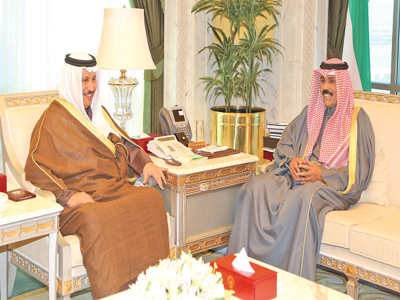 استقبل سمو ولي العهد الشيخ نواف الأحمد بقصر السيف صباح امس رئيس مجلس الأمة مرزوق الغانم. واستقبل سموه سمو الشيخ جابر المبارك رئيس مجلس الوزراء.كما استقبل سموه النائب الأول لرئيس مجلس الوزراء وزير الخارجية الشيخ صباح الخالد. واستقبل سموه نائب رئيس مجلس الوزراء وزير الداخلية الشيخ محمد الخالد.