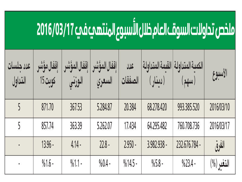 على وقع متباين بين بداية الأسبوع ونهايته سجلت محصلة أسبوعية غلب عليها اللون الأخضر في مؤشرات أسواق المال بدول مجلس التعاون الخليجي الأسبوع الماضي، وربحت 5 مؤشرات مقابل تراجع مؤشرين فقط، هما مؤشرا سوق أبوظبي بنصف نقطة مئوية والكويتي «السعري» بنسبة قريبة كذلك.بينما تصدر المكاسب مواصلا رحلة الارتداد مؤشر سوق دبي المالي بمكاسب اقتربت من نقطة مئوية، رافقه مؤشرا «تاسي» السعودي والقطري، رابحين 0.6، و0.4 في المئة على التوالي، وعاد كذلك سوقا المنامة ومسقط، وركبا سكة الرابحين، وحققا نموا متماثلا بنسبة 0.7 في المئة، محاولين اللحاق بركب الأسواق النامية، بعد تخلفهما في الاسبوع الماضي.تغيير دراماتيكيبعد افتتاح سلبي لمعظم مؤشرات أسواق دول مجلس التعاون المالي، وعلى وقع جني أرباح على معظمها بعد مكاسب كبيرة، عادت قبل نهاية الأسبوع الى الطريق الأخضر، وبقوة لتعوض خسائر البدايات الثقيلة، وتحقق مكاسب هي الأقل خلال الاسابيع الخمس الخضراء الأخيرة، ولكن يكفيها الاستمرار بقوة وبدعم من أسعار النفط التي كانت تتداول بشكل مشابه للمؤشرات الخليجية التي سبقتها بجلسة، وانتهت قبلها بجلسة ايضا، حيث فارق التوقيت بين الاسواق الخليجية والعالمية.كانت التقديرات تشير الى عملية جني أرباح أوسع، وعلى وقع هذه التقديرات افتتحت المؤشرات الخليجية، واستمرت على ضعف وتراجع في السيولة حتى ما قبل الجلسة الأخيرة أو حتى ما سبقها من تغيرات جيوسياسية كبيرة في المنطقة، وهي انسحاب روسيا المفاجئ من سورية التي تعد من المناطق المؤثرة اقتصاديا، فضلا عن السياسة، حيث صراع سياسي بين اقطاب بينها مصالح مشتركة، وهي سعر النفط، والذي تعتمد عليه موازناتها، سواء العامة او حتى التسليحية العسكرية وثلاثة من هذه الأطراف هي أكبر مصدري النفط في العالم، وهي روسيا والمملكة العربية السعودية وإيران، وقد يكون أي انفراج سياسي وتسوية سلمية للقضية السورية تعيد بناء اتفاقات اقتصادية سهلة خاصة بسوق النفط، وهو محور تعاملات الأسواق المالية في دول مجلس التعاون الخليجي خلال فترة سنة تقريبا، بما أنه المصدر الرئيس للموازنات الاقتصاديات الخليجية أو حتى بقية الأطراف المصدرة، ولكن بنسب متفاوتة.دعم مهموبعد شكوك في عقد مؤتمر خاص بمنتجي النفط الكبار من داخل وخارج «أوبك» جاء التأكيد من الدوحة بعقده في 17 أبريل القادم، مما كل دعما مهم لسعر السلعة الاستراتيجية، وأعاد لها اللون الاخضر ليعود «برنت» فوق 40 دولارا، ولحق به الخام الأميركي كذلك.وكان على الطرف الآخر انتظار وقلق مساء الأربعاء في ما يخص سعر الفائدة الأميركية، والذي أبقاه الفدرالي من دون تغير، ولكن الأهم حديث يلين بعده بنصف ساعة، والتي أشارت الى عدم رفع نسبة الفائدة خلال هذا العام بأكثر من مرتين، بعد أن كانت الاحتمالات تشير الى أربع مرات، مما أضعف الدولار أمام العملات الرئيسة، ودعم اسعار السلع والمؤشرات الأميركية، وفي مقدمتها النفط والذهب.كانت التغيرات الاقتصادية أكثر أثرا من التغير الجيوسياسي منتصف الاسبوع، حيث انعكست بشكل سريع ومباشر على مؤشرات أسواق المنطقة في الخليج، لتسجل مكاسب جيدة تعدت في بعضها نسبة 3 في المئة، لتستعيد خسائر بداية الاسبوع او تقلصها الى أدنى مستوى، كما في الكويت وأبوظبي، وتدعم نمو دبي بنسبة 0.9 في المئة بلغت به مستوى 3384.63 نقطة، بعد أن جمع 29.39 نقطة جميعها خلال جلسة الخميس فقط، ليبقى في أعلى مستوياته هذا العام. مؤشرات عمان والبحرينبعد أن تباطأ أداء المؤشرين العماني والبحريني قياسا على أداء بقية الأسواق الخليجية، وانفصلا عنهم في بعض الفترات الماضية، بسبب شح السيولة عادا خلال الاسبوع الماضي وحققا نموا هو ثني أفضل أداء خليجيا وبنسبة 0.7 في المئة لكليهما، حيث حقق العماني ارتفاعا بـ 36 نقطة تقريبا، ليقفل على مستوى 5326.67 نقطة، ليقترب من أعلى مستوياته لهذا العام مرة أخرى، وربح مؤشر البحرين 8.22 نقطة، مقفلا على مستوى 1162.82 نقطة.«السعودي» وعودة سريعةكحال مؤشرات دبي وقطر