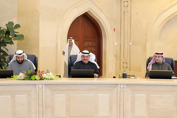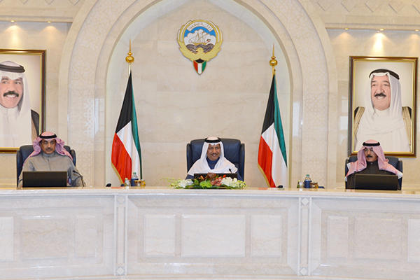 عقد مجلس الوزراء اجتماعه الأسبوعي بعد ظهر اليوم الاثنين في قاعة مجلس الوزراء بقصر السيف برئاسة سمو الشيخ جابر مبارك الحمد الصباح رئيس مجلس الوزراء وبعد الاجتماع صرح وزير الدولة لشؤون مجلس الوزراء ووزير الكهرباء والماء بالوكالة الشيخ محمد عبد الله مبارك الصباح بما يلي: أحيط مجلس الوزراء علما بالأمر السامي لحضرة صاحب السمو الأمير حفظه الله ورعاه بترشيد وتخفيض ميزانية الديوان الأميري والجهات التابعة له منوها بما تمثله هذه المبادرة السامية من رسالة جامعة تستشعر بروح المسؤولية ما تتعرض له موارد الدولة نتيجة استمرار انخفاض أسعار النفط وما تستوجبه من تداعي الجميع أفرادا ومؤسسات لمواجهة هذا التحدي وتجاوز آثاره ونتائجه.وقد حث سمو رئيس مجلس الوزراء نائب رئيس مجلس الوزراء ووزير المالية ووزير النفط بالوكالة بالتنسيق مع كافة الجهات الحكومية لاتخاذ ما يلزم من خطوات واجراءات تترجم التوجيهات السامية وترشيد الانفاق العام بما ينسجم مع متطلبات الظروف الراهنة ويحقق المصلحة العامة التي يحرص الجميع على الالتزام بها.