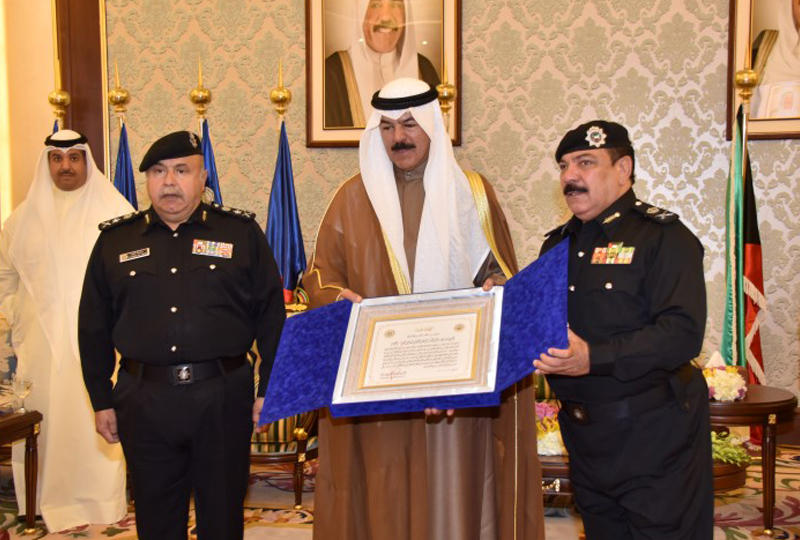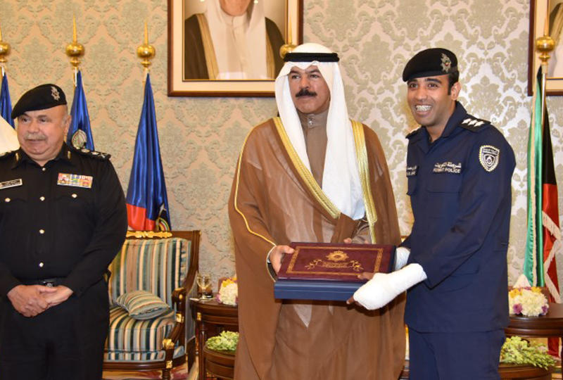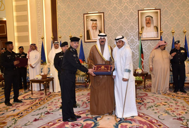 ونقلت ادارة الاعلام الامني في وزارة الداخلية في بيان صحفي عن الشيخ محمد قوله في كلمته خلال تكريم أسرة شهيد الواجب وكيل عريف تركي محمد العنزي الذي توفي اثر حادث الدهس المتعمد ورجال الامن المصابين في الحادث وعدد من المتميزين في الوزارة ان شهادة الطب النفسي لا تعني ان حاملها "غير مسؤول عن تصرفاته».وذكر الشيخ محمد ان الشهيد العنزي سيظل رمزا من رموز الوفاء والاخلاص والتفاني من اجل امن الوطن وامان المواطنين ومثالا يحتذى به مبينا ان تكريم اسرة الشهيد ماهو إلا إيمان وعرفان بما قدمه من عمل دوؤب وجهود مخلصة هدفها الحفاظ على أمن الكويت وآمان مواطنيها.واشاد بجهود رجال الامن في حماية امن الوطن وامان المواطنين معربا عن فخره واعتزازه لما قدمه شهيد الواجب ورفاقه المصابون لهذا الوطن من تضحيات وهو مايؤكد للجميع ان ابناء وزارة الداخلية «كانوا وسيظلون على العهد باقين في التضحية والفداء وقتما كان النداء».واشاد الشيخ محمد الخالد بالمتميزين علميا ورياضيا من منتسبي وزارة الداخلية مطالبا بالمزيد من الجهد والعطاء لمواصلة تحقيق الانجازات وذلك بالتوازي مع مهام الأعمال الامنية المكلفين معربا عن فخره واعتزازه بما حققته بنات الكويت من انجاز طبي مميز على المستوى العالمي.واشار الى مسيرة العطاء لرجل من رجالات وزارة الداخلية الأوفياء وكيل وزارة الداخلية المساعد لشؤون الامن العام اللواء عبدالفتاح العلي وما برهن عليه خلال مسيرته مع العمل الأمني والتي امتدت لأربعة عقود. وتمنى لللجميع التوفيق والسداد والحرص على أن يظل رجل الامن هو الحصن الحصين والدرع الواقي للحفاظ على امن الوطن وامان المواطنين في ظل القيادة السياسية الحكيمة.واعرب الشيخ محمد الخالد عن الشكر والتقدير لسمو أمير البلاد على لمسته الابوية الحانية لرجال الامن عقب حادث الدهس المتعمد مجددا العهد والولاء بان "نكون جنودا أوفياء في الدفاع عن امن الوطن وامان المواطنين".وقال بيان الداخلية ان التكريم يأتي حرصا من وزارة الداخلية على رعاية أبنائها المخلصين وماقدموه من تضحيات جادوا خلالها بأرواحهم وفاء وفداء لأمن الوطن وامان المواطنين والمقيمين.واكد البيان حرص وزير الداخلية واهتمامه ودعمه المتواصل لجميع منتسبي الوزارة تقديرا لما يقدموه من جهد وعمل متواصل في جميع الظروف لحفظ امن الوطن وامان المواطنين والمقيمين وحرصهم على اعلاء هيبة القانون وتطبيقه على الجميع.من جانبه قال وكيل وزارة الداخلية الفريق سليمان الفهد ان وزارة الداخلية جبلت على تكريم الأوفياء والمخلصين من أبنائها الذين قدموا الجهد والعطاء من اجل الحفاظ على أمن الوطن امان المواطنين.وذكر أن اللواء العلي احد رجالات وزارة الداخلية الأوفياء الذين تركوا بصمة واضحة في العمل الأمني وفي جميع المواقع التي عمل بها مشيدا بالدور البطولي الذي قام به رجال الأمن أثناء تنظيم الاحتفالات بالأعياد الوطنية وماتعرضوا له من حادث دهس متعمد.واضاف الفريق الفهد ان المتفوقين والمتميزين من أبناء ومنتسبي وزارة الداخلية في جميع المجالات كانوا ولايزالون محل تقدير واهتمام ودعم من قبل القيادة العليا لوزارة الداخلية متمنيا للجميع التوفيق والنجاح لما فيه أمن الوطن وامان المواطنين.