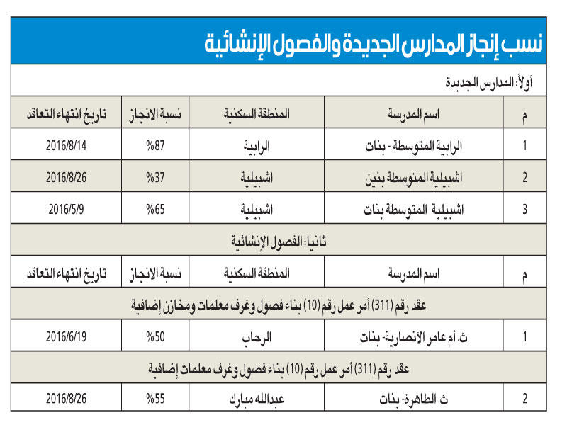 خطة لصيانة 25 مدرسة والصيانات البسيطة تتم خلال العطلة الصيفية
