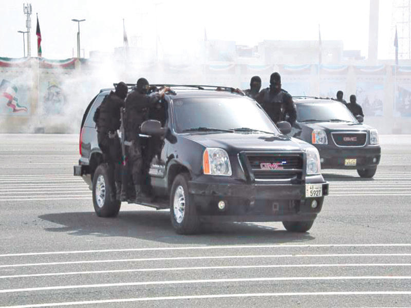وحضر الاحتفال الفريق الفهد، ووكيل الحرس الوطني اللواء ركن مهندس هاشم الرفاعي، ووكيل الوزارة المساعد لشؤون التعليم والتدريب اللواء الشيخ فيصل النواف، والوكلاء المساعدين والمديرين العامين والمدير العام للإدارة العامة للعلاقات والإعلام الأمني العميد عادل الحشاش، والمدير العام للأكاديمية بالتكليف العميد ناصر بورسلي، وعدد من ضباط الحرس الوطني.ونقل الفهد إلى الخريجين تحيات وتقدير راعي الحفل الشيخ محمد الخالد، متمنياً لهم التوفيق لخدمة الوطن، وأكد أن "الداخلية" لا تألو جهدا لرعاية أبنائها من أجل تطوير الجهاز الأمني وتطوير المناهج الدراسية والتدريبات الميدانية لمواكبة المتغيرات الأمنية، بالإضافة إلى تطوير وإعداد وتنمية وتأهيل العنصر البشري من رجال الأمن، ليكونوا عيونا ساهرة يقظة، وعقولاً واعية، مشيدا بالعروض العسكرية التي قدمها الخريجون وطلبة المعهد، والتي تميزت بالدقة والإتقان. من جانبه، أكد اللواء الشيخ فيصل النواف ضرورة التسلح بالعلم ومواصلة الاجتهاد لخدمة العمل الأمني، مشدداً على أهمية الالتزام بالضبط والربط والمعاملة الحسنة مع المواطنين والمقيمين والامانة في العمل.وأكد النواف ضرورة التعاون بين الجميع، حيث إن العمل الامني يعتمد في الأساس على العمل الميداني، مبيناً أن الاكاديمية تحرص دائما على تأسيس طلبتها وتعريفهم بجميع العلوم الأمنية وتزويد أبنائها بأهم مخرجات التعليم التي تتوافق مع متطلبات العمل الميداني وتطبيقه على أرض الواقع.وكان الحفل بدأ بالسلام الوطني ثم تلاوة آيات من الذكر الحكيم، ثم ألقى المدير العام للأكاديمية بالتكليف العميد ناصر بورسلي كلمة توجه بها إلى ممثل راعي الحفل، معربا فيها عن ترحيب الأكاديمية بالضيوف الكرام بمناسبة حفل تخريج أبنائكم خريجي معهد ضباط الصف من الدفعة العشرين.وأضاف بورسلي: "نقف اليوم بكل فخر واعتزاز بقلوب ملؤها حب الكويت أمام شرف الترحيب بقياداتنا الأمنية التي تساند وتدعم رسالتنا التعليمية، حيث إنها ليست مجرد مهام نؤديها، ولكنها غاية ورسالة سامية نصبو إليها جميعا، ونحرص على تحقيقها للوصول إلى غايتنا ولتحقيق رسالتنا".وأهدى كل من الرفاعي والنواف وبورسلي درعين تذكاريين إلى ممثل راعي الحفل الفريق سليمان الفهد.