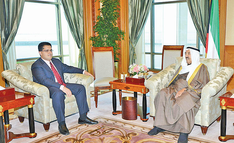 استقبل سمو أمير البلاد الشيخ صباح الأحمد بقصر السيف صباح أمس النائب الأول لرئيس مجلس الوزراء وزير الخارجية الشيخ صباح الخالد، ووزير خارجية قطر الشقيقة محمد بن عبدالرحمن بن جاسم آل ثاني، وذلك بمناسبة زيارته للبلاد.كما استقبل سموه رئيس غرفة تجارة وصناعة الكويت علي الغانم وأعضاء الغرفة، الذين قدموا لسموه رؤية الغرفة بشأن الإصلاح المالي والرؤية التنموية بالكويت في ضوء انخفاض أسعار النفط.