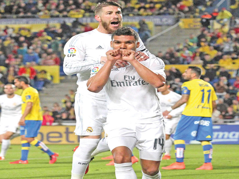 نجا ريال مدريد من فخ مضيفه لاس بالماس وانتزع منه فوزا ثمينا 2-1 امس الأول على ملعب "غران كناريا" وأمام 25846 متفرجا في المرحلة التاسعة والعشرين من الدوري الاسباني لكرة القدم.وكان ريال مدريد البادئ بالتسجيل عبر قائده سيرخيو راموس في الدقيقة 24، لكن لاس بالماس نجح في ادراك التعادل في الدقيقة 87 عبر البرازيلي ويليان جوزيه، قبل ان يتمكن مواطنه كاسيميرو في تسجيل هدف الفوز للضيوف بعد دقيقتين.