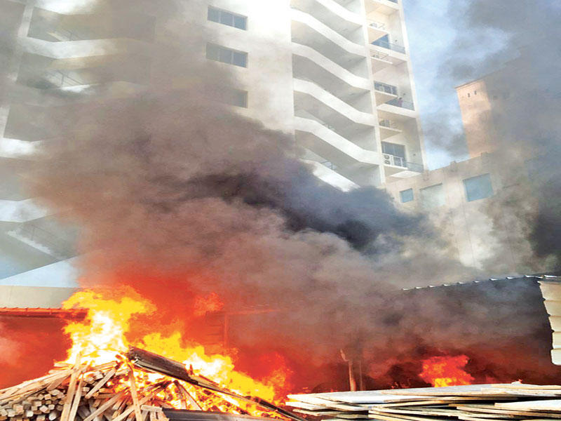 اصيب وافد اسيوي بحروق من الدرجة الاولى جراء حريق اندلع مساء امس الاول في مخلفات للبناء امام احدى البنايات في منطقة الفنطاس، قبل ان يمتد ويلتهم ٣ مركبات متوقفة امام البناية، كما اسفر الحادث عن خسائر مادية جسيمة لحقت بالمركبات وواجهة البناية.وفي التفاصيل التي رواها لـ«الجريدة» مدير ادارة العلاقات العامة والاعلام في الادارة العامة للاطفاء العقيد خليل الامير ان بلاغاً ورد إلى مركز العمليات مساء أمس الأول يفيد بوجود حريق في منطقة الفنطاس، وعلى الفور توجهت فرقة إطفاء مركز المنقف إلى موقع الحادث.