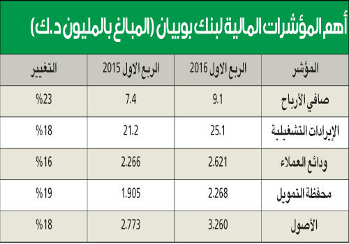 «بوبيان» حقق 9.1 ملايين دينار أرباحاً صافية في الربع الأول من 2016