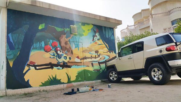 توقف الأطفال عن الخربشة ووقفوا ينتظرون بشوق إنتهاء شاب كان يراقب ما فعلوه من رسم لوحته الفنية لتغطي التشويه الذي افتعلوه على جدار محول كهرباء في إحدى مناطق الكويت فكانت تلك اللحظة الأولى التي تعرفوا خلالها على ما يُطلق عليه «فن الشارع».