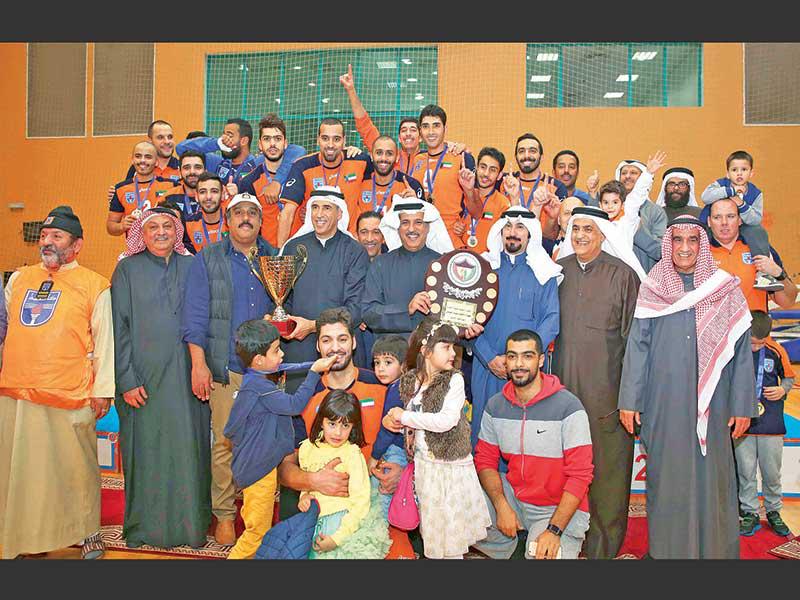 توج فريق كاظمة بلقب الدوري الممتاز للكرة الطائرة للمرة الثانية على التوالي، بعد فوزه على ضيفه القادسية 3- صفر أمس الأول في المباراة الختامية للبطولة.