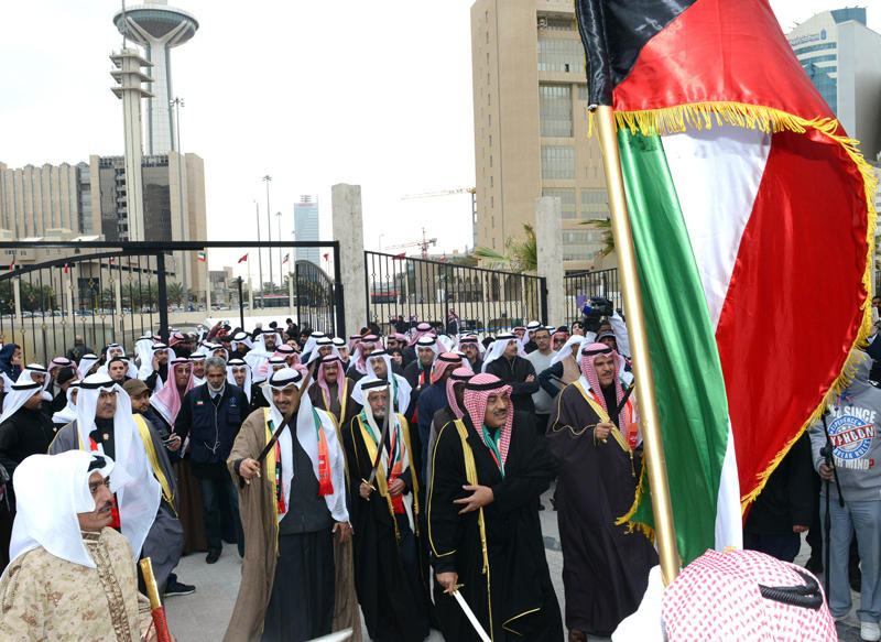 صباح الخالد يرفع العلم في احتفال ساحة الصفاة الشعبي