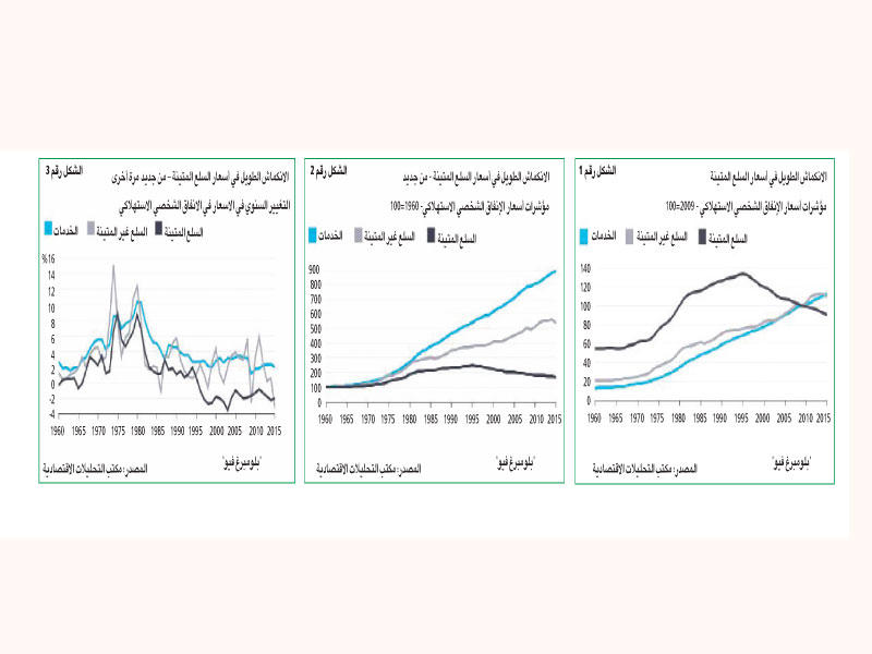 منذ سنة 1995 استمر هبوط أسعار السلع المتينة مثل السيارات وأجهزة التلفاز والحواسيب والبضائع المماثلة في الولايات المتحدة، وذلك على الرغم من أن أسعار السلع الخفيفة والخدمات استمرت في الارتفاع في أغلب الأحيان. وفي الشكل رقم 1 تم استخدام الأسعار على اعتبار سنة 2009 هي سنة الأساس، بينما يستخدم الشكل رقم 2 سنة 1960 على شكل أساس.أما الشكل رقم 3 ففيه المعلومات ذاتها على شكل تغيرات نسبة مئوية محسوبة على أساس سنوي، وهي الطريقة التي نتحدث بها عادة عن التضخم أو الانكماش، وتمثل طريقة تقديم المعلومات كيفية فهمنا لها.ويروي هذا الجدول قصة مألوفة بالنسبة الى العديدين منا والمتعلقة بالانكماش الكبير، وقد ارتفع اجمالي معدل التضخم من دون توقف منذ منتصف ستينيات القرن الماضي، ثم اعترض على ذلك بول فولكر، ومنذ ذلك الوقت استمر معدل التضخم في الهبوط.وترددت روايات مماثلة في الدول المتقدمة الاخرى واعتبرت سياسة التشدد المالي بصورة عامة أنها ذات دور ريادي، ثم إن عدم حدوث أزمة نفطية كبرى منذ مطلع الثمانينيات من القرن الماضي (وكان الارتفاع الكبير في معدل تضخم أسعار السلع غير المتينة في سنة 1973/ 1974 وفي 1979/ 1980) يعود إلى أسعار النفط، ولم يلحق ذلك أي ضرر أيضاً.ويمكن شرح تلك الجداول في القصتين التاليتين:1 – القصة الكامنة وراء الانكماش الكبير في أسعار السلع المتينة (الذي بدأ في الربع الثاني من سنة 1995).2 – القصة الكامنة وراء استمرار معدل التضخم في قطاع الخدمات. ويظهر الجدول الثالث أن وتيرة الزيادة تباطأت بعد سنة 2008، ولكن أسعار الخدمات استمرت في الارتفاع. والانكماش الكبير في أسعار السلع المتينة هو محور تركيزنا اليوم، ولا يبدو أن ذلك كان مدفوعاً من قبل البنوك المركزية وقدرتها على خلق وتدمير الأموال.ويقول ميلتون فريدمان إن "التضخم كان دائماً وفي كل مكان ظاهرة نقدية"، ويفترض أن يعني ذلك تماماً ما ذهب اليه فريدمان، ولكن القوى المالية التي تكتسح الاقتصاد برمته لا تفسر لماذا تتبع أسعار السلع المتينة ذلك المسار المختلف بخلاف الأسعار الاخرى، والسؤال هو ما الذي يطرحه ذلك؟يتمثل أحد التفسيرات في أن البضائع (المتينة وغير المتينة معاً) تخضع لعمليات تجارية فيما لا ينسحب ذلك بصورة عامة على قطاع الخدمات، وبخلاف معظم الخدمات يتم شراء وبيع البضائع عبر الحدود الوطنية، ومن هذا المنطلق فإن بروز الصين على شكل عملاق منتج جديد للمواد المتدنية التكلفة لسلع مصنعة في حقبة التسعينيات والـ 2000 يفرض مساراً هابطاً الى حد كبير على أسعار السلع المتينة، لا على أسعار غير المتينة (والفئات الثلاث الرئيسية للسلع غير المتينة هي الغذاء والطاقة والملابس، والصين دولة كبيرة مصدرة للملابس) وليس لها اي دور على الاطلاق في قطاع الخدمات.التفسير الآخر هو أن مصنعي السلع المتينة يستمرون في تحقيق تحسن في أعمالهم في انتاج تلك السلع، ويطلق خبراء الاقتصاد على ذلك سمة "نمو الانتاجية متعددة العوامل" وكانت أعلى كثيراً في العقود القليلة الماضية في تصنيع السلع المتينة لا غيرها. وكان النمو في الانتاجية في قطاع الخدمات أمر يصعب قياسه بقدر أكبر ولكنه يبدو اقل مما هو الحال في التصنيع.وهذا لا يعني أن مصنعي السلع المتينة حققوا تحسناً في أدائهم وأعمالهم، ولكنهم برعوا في انتاج مواد تتفوق على منتجات الماضي وخاصة في مجال الحواسيب والأجهزة الالكترونية الاخرى.وتحاول مقاييس الحكومة لمعدلات التضخم في الولايات المتحدة عكس مثل تلك التحسينات، وقد تعرضت هذه التعديلات في أغلب الأحيان الى انتقاد من قبل المشككين على أساس أنها تلاعب في معدلات التضخم ولكن لا يمكن تفاديها حقاً، وصحيح أن هاتف آي فون أكثر تكلفة من هاتف برنسيس قبل 25 سنة.التقدم التقني الذي يمثل المحرك الدافع لنمو الانتاجية المتعددة العوامل اضافة الى المكاسب الكبيرة في مستويات المعيشة خلال القرنين الماضيين يمثل سبباً جيداً لاستمرار الانكماش في السلع المتينة كما تلعب المنافسة العالمية دوراً في هذا الشان. ويق