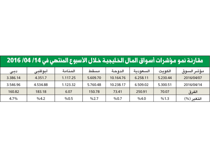 تقرير أسواق المال الخليجية الأسبوعي : اللون الأخضر يعم جميع الأسواق بدعم أسعار النفط