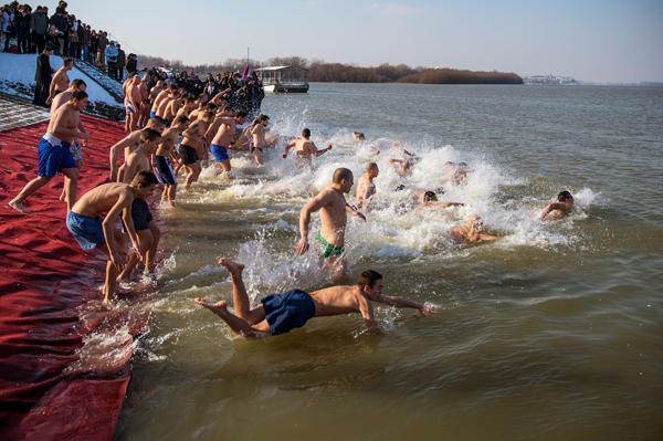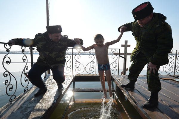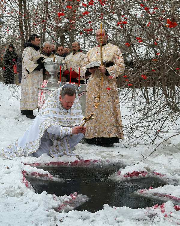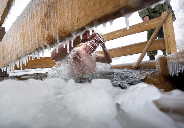 الروس الارثوذكس يقفزون في المياه المتجمدة لـ «تطهير نفوسهم»