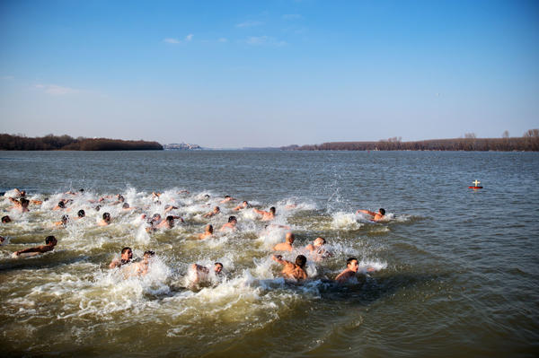 توافد الاف الروس الثلاثاء الى الانهر والبحيرات المجلدة للقفز في المياه المصقعة بمناسبة عيد الغطاس لدى الطوائف الارثوذكسية.