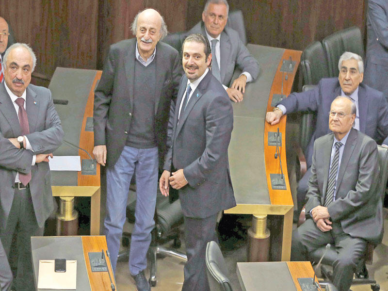 وتمنى الحريري، في مؤتمر عقده في مجلس النواب، أمس، على «النواب الغائبين أن يقوموا بحقهم الدستوري في الجلسة المقبلة»، مضيفاً: «اليوم اقتربنا من النصاب ووصلنا إلى 72 نائباً نزلوا إلى مجلس النواب لانتخاب الرئيس».وأشار إلى أن «الخلافات السياسية ممكن حلها بوجود رئيس جمهورية أفضل بكثير من الفراغ الحالي»، متمنياً على «كل النواب عدم ترك هذا الفراغ الذي يقتل والحل يكون بانتخاب رئيس». وجدد الحريري تمسكه بالنائب فرنجية، متابعاً: «أنا أتفهم موقفه، ولذلك لن أتهم الجميع بالتعطيل، لكنني أطلب منهم العمل وفق المصلحة الوطنية».وكشف الحريري أنه «باقٍ في لبنان حتى جلسة انتخاب الرئيس المقبل»، كما أكد رئيس «حزب الكتائب» النائب سامي الجميل، أمس، أن «الشعب اللبناني شبع مناورات، فمن غير المقبول حضور النواب لانتخاب مرشحين غير موجودين في الجلسة»، داعياً «كل الكتل السياسية إلى إعادة النظر بمواقفها».وأكد الجميل أنه «لا يمكن للحكومة أن تكون بديلة عن الرئيس، ولاسيما في وضعها الحالي»، مشدداً على أن «الانتقال إلى مرحلة جديدة يعني أن نعود إلى منطق الدولة المتمثل بانتخاب رئيس للجمهورية بأسرع وقت ممكن».وقبيل الجلسة، جدد فرنجية التأكيد على أنه لن يشارك في أي جلسة نيابية إلا بالتنسيق مع حلفائه، موضحاً: «أنتمي إلى فريق (8 آذار) وعندما يتم الاستحقاق الرئاسي وأنتخب رئيساً سأكون رئيساً لكل لبنان».بدوره، غرد جنبلاط على حسابه الخاص عبر موقع التواصل الاجتماعي «تويتر» متهكماً بالقول: «ستفتتح اليوم جلسة من جلسات العمر في المجلس النيابي، الجلسة 36 للسيمفونية غير المنتهية لانتخاب رئيس جمهورية للأوركسترا، والكمان لصاحبها عبد اللهيان، يتخللها سحبات أوبرا للتنور الشهير هنري حلو وفرقة اللقاء الديمقراطي».