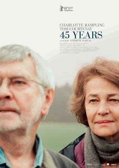45 Years (45 سنة) فيلم يتفجّر بهدوء لما يحمله من دراما قوية وبراعة في نقل التعقيدات العاطفية الدقيقة. ينجح الفيلم، الذي يؤدي فيه دور البطولة الممثلان البريطانيان الناجحان والمخضرمان شارلوت رامبلينغ وتوم كورتني، في تقديم صورة دقيقة عما يحدث للزواج الطويل الأمد، عندما يؤدي بعض التطورات في الحياة إلى زعزعة الأرض من تحت أقدام الجميع.