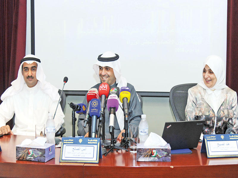 أكد نائب رئيس مجلس الوزراء وزير المالية وزير النفط بالوكالة أنس الصالح أن مجلس الوزراء كلّف وزارة المالية بالإشراف والتنسيق لرفع تقارير دورية للمجلس عن كل برنامج عمل من برامج عمل وثيقة الإصلاح المالي والاقتصادي.جاء ذلك خلال المؤتمر الصحافي الذي عقده أمس الصالح لإعلان وثيقة الإصلاح المالي والاقتصادي، التي أعدتها لجنة الشؤون الاقتصادية بمجلس الوزراء، والتي أقرها المجلس في اجتماعه أمس، بمشاركة وزيرة الشؤون الاجتماعية والعمل وزيرة التخطيط هند الصبيح، ووزير التجارة والصناعة د. يوسف العلي.وأشار الصالح إلى أنه "حتى لو ارتفعت أسعار النفط ووصلت إلى مستويات الـ100 دولار، فإن الوثيقة لن تتغير، ولن يكون هناك أي تعديل للبرامج المستهدفة"، موضحاً أن العجز في الميزانية العامة بلغ حتى فبراير الماضي 5.172 مليارات دينار.وقال إن "الكويت تسعى إلى الخروج التدريجي من دائرة الانتاج المباشر عن طريق خصخصة المشاريع المملوكة للدولة مثل المطارات والموانئ، وبعض مرافق مؤسسة البترول الكويتية".وأضاف أن الوثيقة شملت أيضاً خطة تتضمن فرض ضرائب بنسبة عشرة في المئة على أرباح الشركات، بالإضافة إلى 5 في المئة ضريبة القيمة المضافة، وتتفاوت نسب الضرائب المفروضة حالياً على الشركات المحلية والأجنبية، وإن كان معظم الشركات الكويتية لا يدفع في الوقت الحالي ضرائب على الدخل.ولفت إلى أن هناك التزامات أخرى، "إذ يتعين على بعض الشركات دفع ضريبة على التوظيف، فضلا عن إلزامها بدفع الزكاة والمساهمة في صندوق للأبحاث العلمية"، مؤكداً أن "الحكومة تستهدف أن تكون الضريبة برنامجاً تحفيزياً، وبعد ارتفاع العوائد سنرى إمكانية التوسع فيها من عدمها".لا تجميد لزيادة الرواتبوقال الصالح إن "الحكومة لم تجمّد زيادات الرواتب على الإطلاق، كما أن الحديث عن شح السيولة، وبالتالي عدم جدوى طرح المشاريع الواردة في الوثيقة غير صحيح"، مؤكداً "تخمة" السيولة في المصارف الكويتية.وفي ما يتعلق بإصدار السندات والصكوك قال، إن "هناك لجنة لإدارة الدين العام تعمل مع صندوق النقد الدولي، لبحث أفضل السبل للدين العام"، مشيراً إلى أنها "تدرس تخفيف أي انعكاسات سلبية على تصنيف الدولة خلال الفترة المقبلة"، مؤكداً في الوقت ذاته قوة الدينار الكويتي ومتانته، مضيفاً أن "الوثيقة تتضمن إعادة تسعير بعض السلع والخدمات العامة، وإعادة تسعير استغلال أراضي الدولة".2.7 مليار دينار للمواطنينوأشار الصالح إلى أن المواطنين سيتملكون مساهمات تصل قيمتها إلى 2.728 مليار دينار عن طريق مساهمتهم في مشاريع الشراكة بين القطاعين العام والخاص على النحو الوارد في الوثيقة، ومن بينها محطات توليد الطاقة ومشروع مترو الكويت والسكك الحديدية، موضحاً أن الهدف من هذه الخطوة إشراك المواطنين في اتخاذ القرارات الاقتصادية من خالل مساهمتهم في حقوق الملكية.وقال "هناك 28 برنامج عمل منها 23 قصيرة الأجل تركز كلها على الباب الأول من الميزانية أي المالية العامة"، مضيفاً أن "هذا الأمر ليس من باب المصادفة بل لاعتقاد الحكومة التام أنها يجب أن تتعامل مع الجانب المالي بشكل سريع".تملك القطاع الخاصمن جهته، قال وزير التجارة والصناعة د. يوسف العلي، إن "دور القطاع الخاص سيعتمد على التملك في المشاريع التنموية من خلال أمرين، خصخصة المرافق العامة التي تنوي الحكومة خصخصتها، والدخول في الشركات المزمع إقامتها في الوثيقة كشراكة بين القطاعين العام والخاص". وأضاف أن مجلس إدارة مؤسسة الموانئ وافق مبدئياً على خطة إسناد إدارتها لمشغلين من القطاع الخاص، وهناك دراسات بهذا الشأن ستعلن خلال الفترة القادمة.الخطة الخمسيةبدورها، قالت وزيرة الشؤون الاجتماعية والعمل وزيرة التخطيط هند الصبيح، إن "المشاريع الواردة في الوثيقة والبالغة 11 مشروعاً جميعها موجودة في الخطة الخمسية للمجلس الأعلى للتخطيط، وهناك متابعة من قبل مجلس الأمة ومجلس الوزراء على تنفيذها".وقالت إن كل برنامج عمل له برنامج تنفيذي محدد بزمن وخطوات ومحد
