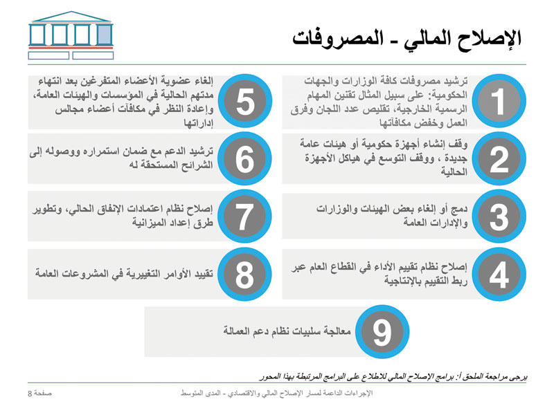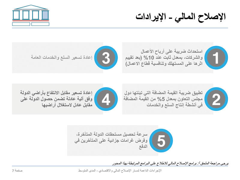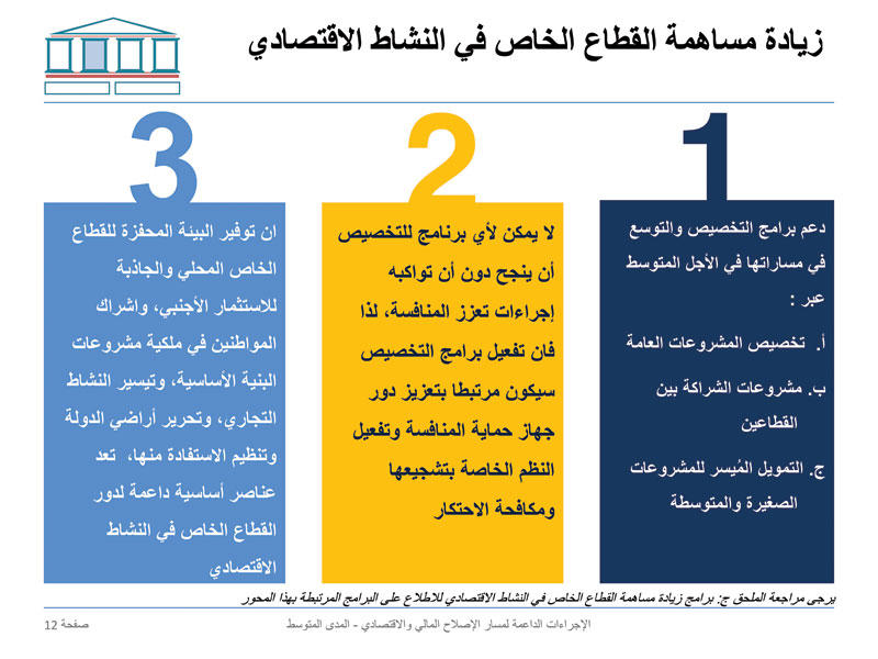 ● أكد خلال إعلان وثيقة الإصلاح المالي زيادة مساهمة القطاع الخاص في النشاط الاقتصادي