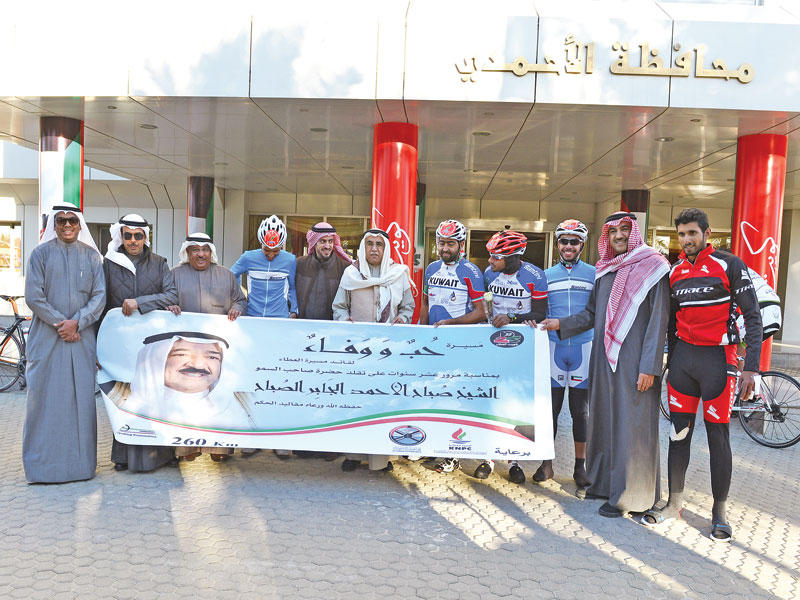 انطلقت صباح امس الأول من مبنى محافظة الأحمدي مسيرة حب ووفاء، لفريق الكويت للدراجات الهوائية، بمناسبة الذكرى العاشرة لتولي سمو أمير البلاد الشيخ صباح الأحمد مقاليد الحكم.وأكد محافظ الاحمدي الشيخ فواز الخالد حرص المحافظة على التعاون والتنسيق لتنظيم فعاليات موازية للاحتفالات، مشيرا الى «مسيرة الخير للدراجات» متوجها بالشكر الى القائمين على تنظيمها والجهات الراعية لها.