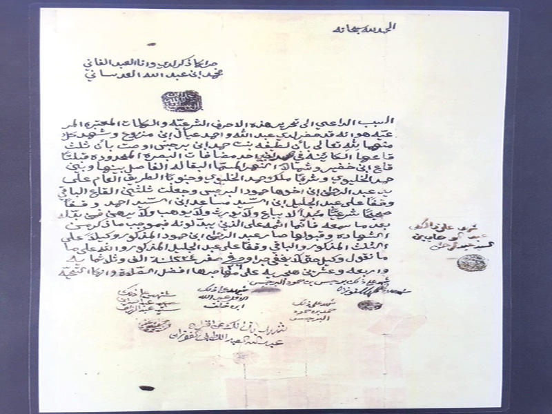 وثيقة لها تاريخ : لطيفة حمد البرجس أوقفت أرضاً تملكها في البصرة عام 1906