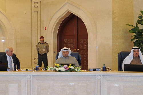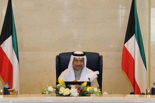 في قاعة مجلس الوزراء في قصر السيف برئاسة سمو الشيخ جابر مبارك الحمد الصباح رئيس مجلس الوزراء وبعد الاجتماع صرح وزير الدولة لشؤون مجلس الوزراء ووزير الكهرباء والماء بالوكالة الشيخ محمد عبدالله المبارك الصباح بما يلي: يتقدم مجلس الوزراء في مستهل اجتماعه بخالص التهنئة إلى مقام حضرة صاحب السمو الأمير وسمو ولي العهد حفظهما الله ورعاهما والشعب الكويتي الكريم بمناسبة قرب حلول الذكرى الخامسة والخمسين للعيد الوطني والذكرى الخامسة والعشرين ليوم التحرير المجيدين مبتهلا إلى المولى العلي القدير أن يرحم شهداءنا الأبرار ويتغمدهم بواسع رحمته ويسكنهم فسيح جناته ونسأله عز وجل أن يحفظ هذا الوطن العزيز وقيادته وشعبه الكريم من كل مكروه وأن يديم عليه نعمة الأمن والأمان وأن يكلله بدوام التقدم والازدهار والرخاء في ظل القيادة الحكيمة لحضرة صاحب السمو الأمير وولي عهده الأمين حفظهما الله ورعاهما.