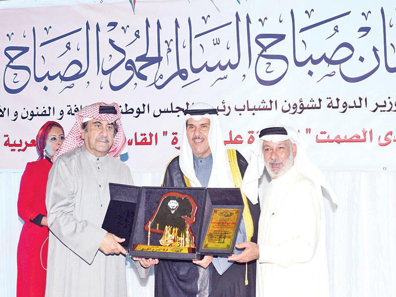 أقامت فرقة المسرح الكويتي حفل تكريم لفريق عمل مسرحية «صدى الصمت»، لفوزها بجائزة أفضل عرض مسرحي عربي في الموسم الخامس لجائزة سمو الشيخ سلطان بن محمد القاسمي حاكم الشارقة، وعُرضت في مهرجان المسرح العربي الثامن الذي تنظمه الهيئة العربية للمسرح والذي عُقد في يناير الماضي بالكويت، وسيعرض العمل في افتتاح مهرجان أيام الشارقة المسرحية بدورته الـ26 في 17 مارس المقبل، وكان الحفل برعاية وحضور وزير الإعلام وزير الدولة لشؤون الشباب الشيخ سلمان الحمود.وصرح الوزير الحمود لوسائل الإعلام قائلاً: «إن فوز المسرحية بجائزة القاسمي فخر كبير، وما تحصده المسرحيات الكويتية من جوائز في الداخل والخارج هي انجازات تشكل تظاهرة ثقافية تستحق التكريم».وأكد الحمود أن ثمة توجهات لدى القيادة السياسية لتقديم دعم أكبر للعمل المسرحي، لافتاً إلى وجود تنسيق مع وزارة التربية لإعادة انطلاق المسرح المدرسي من خلال تجهيز 60 مسرحا مدرسيا بهدف ترسيخ مبادئ التسامح والمواطنة وقيم الدين الحنيف. قدمت الحفل المذيعة منال العمران، وعددت إنجازات الفرقة في كلمة مقتضبة، ثم ألقى رئيس مجلس إدارة المسرح الكويتي الفنان أحمد السلمان كلمة أكد خلالها أن فرقته استطاعت حصد العديد من الجوائز على المستويين الخليجي والعربي، إثر التشجيع المقدم لها من الدولة، إضافة إلى وجود المواهب الشبابية التي اطلقت طاقاتها على خشبة المسرح خلال الفترة الأخيرة، موضحاً أن الحركة المسرحية تعيش في القمة، لما تتلقاه من دعم وتشجيع من وزير الاعلام، ودعم الأمين العام للمجلس الوطني للثقافة والفنون والآداب م. علي اليوحة، والأمين المساعد لقطاع الفنون د. بدر الدويش.أما نائب مجلس الإدارة الفنان عبدالله غلوم، فقد أشار في كلمته المرتجلة إلى رواد ومؤسسي فرقة المسرح الكويتي، وهم محمد النشمي، د. صالح العجيري، حسين الصالح الحداد، عقاب الخطيب، محمد المنيع، مثمناً دور جيل الشباب الحالي.ومن جهته، أشاد الفنان طارق العلي بتكريم الفنان الكبير عبدالحسين عبدالرضا وهو على قيد الحياة بوضع اسمه على أحدث المسارح في الكويت، معتبرا هذا التكريم مكافأة رائعة أثناء حياته، وخير دليل على اهتمام ودعم الدولة لفنانيها. ثم بدأ الحمود بتكريم نقيب الفنانين عبدالحسين عبدالرضا، وم. علي اليوحة، ود. بدر الدويش، والكاتبة القديرة عواطف البدر، والشيخ دعيج الخليفة، إضافة إلى الفنانين: داود حسين، وطارق العلي، وحسن البلام، وصالح المناعي (من قطر)، ونصار النصار، وشريدة الشريدة.بعدئذ، جاء تكريم فريق مسرحية «صدى الصمت»: فيصل العميري، وسماح، وفيصل العبيد (سينوغرافيا)، ومحمد الرباح (مصمم الديكور)، وعبدالعزيز العبيد (مسؤول التقنيات المسرحية)، وعبدالرحمن السلمان (مساعد المخرج) وغاب الفنان عبدالله التركماني لانشغاله بتصوير أحد المسلسلات لرمضان المقبل. وتم تكريم مخرج مسرحية «القلعة» علي الحسيني.وانتهى الحفل مع وصلة للمطرب عادل الرويشد الذي أدى مجموعة من الأعمال الغنائية الجميلة.