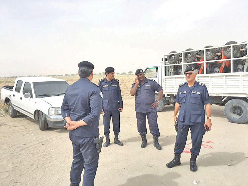 شنت مديرية أمن الأحمدي حملة أمنية في الثامنة من صباح أمس على اسطبلات ميناء عبدالله، بإشراف وكيل وزارة الداخلية المساعد لشؤون الامن العام بالإنابة اللواء إبراهيم الطراح، وقيادة مدير امن الاحمدي بالإنابة العميد عبدالله الملا، وبمشاركة اعضاء من نادي الاحمدي للفروسية وموظفين من الهيئة العامة للزراعة والثروة السمكية.وذكرت الإدارة العامة للعلاقات والاعلام الأمني بالوزارة أن الحملة اسفرت عن ضبط 12 مركبة خاصة استخدمت في الاستهتار والرعونة، إضافة الى 10 بانشي، وضبط شخص واحد مدين، و3 اشخاص منتهية إقامتهم، و4 بدون إثبات.