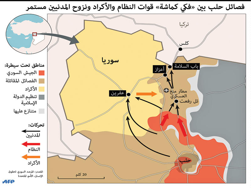 أفادت منظمتان غير حكوميتين، أمس، هما جمعية «باكس» الهولندية و»معهد سورية» الأميركي، بأن أكثر من مليون سوري يعيشون تحت الحصار بعد 5 سنوات من الحرب في مناطق داخل دمشق وفي محافظات ريف دمشق وفي حمص ودير الزور وإدلب، في حين أعلنت الأمم المتحدة أن مئات الآلاف من المدنيين قد تنقطع عنهم إمدادات الطعام إذا نجحت قوات الحكومة السورية في محاصرة المناطق التي تسيطر عليها المعارضة بمدينة حلب وحذرت من موجة فرار جديدة للاجئين.وتخشى الأمم المتحدة أن يقطع تقدم القوات الحكومية الطريق الوحيد المتبقي بين المناطق التي تسيطر عليها المعارضة في حلب ومعابر الحدود التركية الرئيسة، والتي كانت بمنزلة شريان حياة للمناطق التي تسيطر عليها المعارضة.وقال مكتب الأمم المتحدة لتنسيق الشؤون الإنسانية إنه «إذا قطعت الحكومة السورية وحلفاؤها طريق الفرار الوحيد المتبقي للخروج من شرق مدينة حلب، فإن هذا سيعزل 300 ألف يعيشون في المدينة عن أي مساعدات إنسانية ما لم يتم التفاوض على نقاط دخول عبر الخطوط»، وأضاف «إذا استمر تقدم قوات الحكومة السورية حول المدينة تقدر المجالس المحلية أن ما بين مئة ألف و150 ألفا سيفرون نحو عفرين والريف الغربي لمحافظة حلب».وشنت القوات السورية المدعومة بضربات جوية روسية ومقاتلي حزب الله اللبناني هجوما كبيرا على ريف حلب الذي تسيطر حكومة دمشق على أجزاء منه، وتسيطر المعارضة على مناطق أخرى فيه منذ سنوات. والهجوم الذي يستهدف تطويق حلب التي كانت يوما كبرى المدن السورية، وعاش فيها مليونا نسمة، يعد من النقاط الفارقة في الحرب الأهلية المستمرة منذ خمس سنوات وقتل فيها ربع مليون شخص وشرد 11 مليونا أجبرتهم الحرب على ترك منازلهم.تركيا والنازحونالى ذلك، قال وزير الخارجية التركي مولود جاويش أوغلو، أمس، إن تركيا تسمح بدخول اللاجئين السوريين «بطريقة محكومة»، وإنها سمحت حتى الآن بدخول 10 آلاف لاجئ من نحو 50 ألف شخص وصلوا إلى حدودها في موجة التدفق الأخيرة. وقال الوزير التركي في مؤتمر صحافي مع نظيره المجري خلال زيارة لبودابست إن عدد اللاجئين المتدفقين على تركيا قد يصل إلى مليون شخص إذا استمرت الحملة العسكرية الروسية والحكومية السورية على المعارضة. وتستضيف تركيا بالفعل نحو 2.5 مليون لاجئ من سورية.وكان نعمان قورتولموش نائب رئيس الوزراء التركي قال أمس الأول إن تركيا تقدر أنه في أسوأ الأحوال الممكنة قد يحتشد نحو 600 ألف شخص فارين من حلب على حدودها مع سورية. وأمس بلغت مخيمات النازحين في المنطقة الحدودية الفاصلة بين سورية وتركيا قدرتها القصوى على الاستيعاب.وفي دمشق، أسفر تفجير انتحاري بسيارة مفخخة تبناه «داعش» واستهدف نادي الضباط في مساكن برزة بدمشق عن مقتل 9 أشخاص بينهم عناصر من الشرطة، وإصابة 20 آخرين بجروح، وفق المرصد السوري لحقوق الإنسان. ونقل التلفزيون الرسمي السوري عن مصدر في وزارة الداخلية أن «سيارة حاولت اقتحام نادي ضباط الشرطة في مساكن برزة وتصدى لها عناصر حماية النادي، فقام الانتحاري بتفجيرها، ما أدى الى ارتقاء شهداء وإصابة عدد من المواطنين»، من دون تحديد الحصيلة. من ناحيته، قال المرصد إن «انتحاريا كان يرتدي زي الشرطة أقدم على تفجير نفسه داخل السيارة».اجتماع ميونيخالى ذلك، قال مسؤولون أميركيون إن وزير الخارجية الأميركي جون كيري سيسعى للتوصل إلى وقف فوري لإطلاق النار في سورية، وتقديم مساعدات للمدنيين، وذلك خلال اجتماع مجموعة فيينا الدولية في ميونيخ غدا الخميس.وقال مسؤول كبير في الحكومة الأميركية: «يعتقد كيري أنه إذا تمكنا من التوصل لوقف لإطلاق النار وجرى تسليم المزيد من المساعدات، فمن الممكن تحقيق تقدم دبلوماسي آخر.» وأضاف المسؤول: «من الصعب استمرار الحوار في وقت يتعرض فيه الناس للقتل والتجويع حتى الموت».وقال دبلوماسي غربي تحدث شريطة عدم نشر اسمه «إذا اغلقت الحدود بين سورية وتركيا فلن يصمد هؤلاء الرجال على قيد الحياة طويلا... التحدي الآن هو حماية رأس المعارضة من الغرق».ومن ناحيته، 