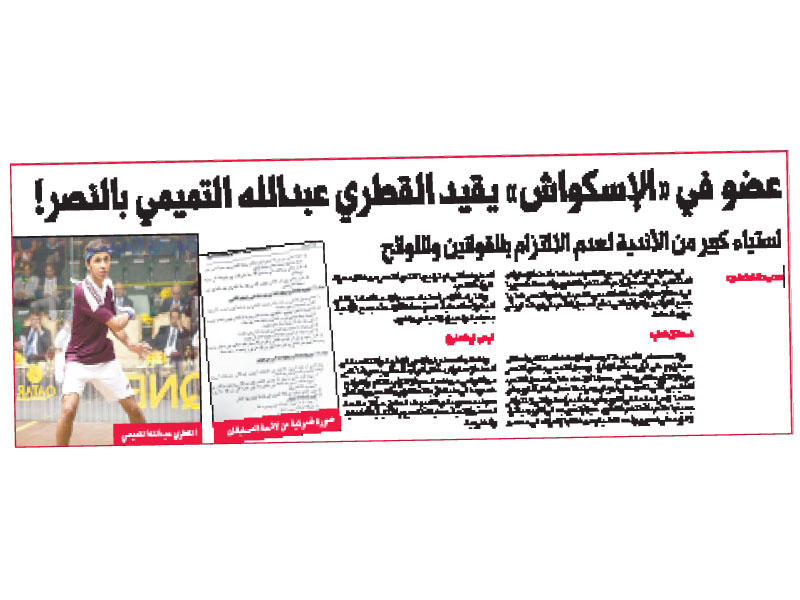 أكدت مصادر موثوقة لـ«الجريدة»، أن أحد الأعضاء وأصحاب المناصب التنفيذية في اتحاد الإسكواش استخرج شهادة لمن يهمه الأمر من الشركة التي يمتلكها، لتسجيل لاعب الإسكواش القطري عبدالله التميمي في صفوف النصر.