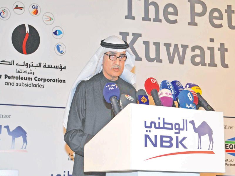 وعن الإصلاحات الاقتصادية الهيكلية، أوضح الصالح أنها «ستكون جذرية عبر ترشيد الدعوم لتصل إلى مستحقيها، على ألا يكون هناك تجاوز في الوقت نفسه»، مشيراً إلى أن «هذه الإصلاحات ستأتي في إطار تحفيز القطاع الخاص والقطاعات الاقتصادية الأخرى».من جهته، قال نائب رئيس مجلس الإدارة الرئيس التنفيذي لمؤسسة البترول الكويتية نزار العدساني، إن الإنفاق على الاستثمارات خلال السنوات الخمس المقبلة سيبلغ نحو 100 مليار دولار، وذلك لتحقيق التوجهات الاستراتيجية المعلنة، لافتاً إلى أنه سيتم تخصيص نصف هذا المبلغ لمشروعات تنموية تم تحديدها وإعلانها. وأضاف العدساني: «إننا نؤمن بأن الكفاءة الوطنية مهمة لضمان ميزة تنافسية للمؤسسة وتنفيذ الاستراتيجيات، ولذلك نفذنا برامج تدريب متنوعة لدعم القدرات الإجمالية فنياً وقيادياً».على صعيد متصل، قال وزير الدولة لشؤون مجلس الوزراء وزير الكهرباء والماء بالوكالة الشيخ محمد العبدالله، إن الحكومة تعكف حالياً على دراسة وتقييم جملة بدائل بشأن ترشيد الإنفاق العام ووقف الهدر، مؤكداً أن ذلك يتطلب توافقاً بين السلطتين التنفيذية والتشريعية.وصرح العبدالله بأن هذه البدائل تتضمن نظامَي «الشرائح» و«الإعفاء الكامل لفئة محددة» فيما يتعلق بأسعار الوقود والكهرباء والماء.وأضاف: «علينا كحكومة الذهاب إلى مجلس الأمة لبيان ما لدينا من معلومات، وفي حال اقتناع المجلس بها فيسصدر تشريعاً مناسباً لذلك»، مجدداً التأكيد أن «الحكومة لن تقر أي رفع لأسعار الكهرباء والماء إلا بعد الرجوع إلى مجلس الأمة».