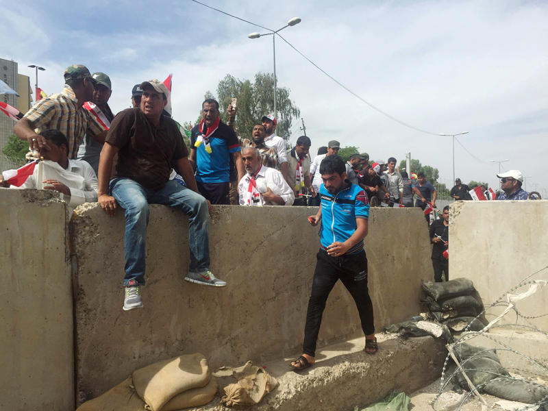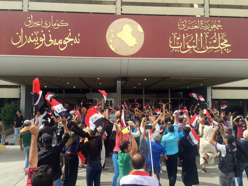 حذر رئيس البرلمان العراقي سليم الجبوري اليوم السبت من "مخاطر انهيار الاوضاع في العراق بشكل كامل".وقال الجبوري في بيان بصفحته على صفحة التواصل الاجتماعي فيسبوك إن "انهيار الوضع بشكل كامل سيجعلنا امام مأزق خطير ليس من السهولة تجاوزه"-------------------------------------------------------------------------------------------------------------------------------------تحديث 1أكدت قيادة عمليات بغداد اليوم السبت التزامها بتأمين البعثات الدبلوماسية داخل المنطقة الخضراء بعد اقتحامها من قبل متظاهرين من التيار الصدري.وقال المتحدث باسم القيادة العميد سعد معن لوكالة الانباء الكويتية (كونا) ان "الاجهزة الامنية العراقية ملتزمة بتأمين كافة البعثات الدبلوماسية الموجودة داخل المنطقة الخضراء بعد ان اقتحمها المتظاهرون".واكد ان الاجهزة الامنية تلقت تعليمات من رئيس الوزراء العراقي القائد العام للقوات المسلحة حيدر العبادي بالضرب "بيد من حديد كل من يحاول الاعتداء على الاملاك العامة او الخاصة" مثنيا في الوقت نفسه على ما وصفها بسلمية المظاهرات "حتى الان". ونفى ان يكون اقتحام المنطقة الخضراء قد اثر على حركة النقل الجوي في العاصمة العراقية مؤكدا ان طريق مطار بغداد لايزال مفتوحا وحركة الطائرات منتظمة ولا يوجد ما يعكر الامن في مناطق غرب العاصمة.وكان الالاف من متظاهري التيار الصدري اقتحموا المنطقة الخضراء التي تضم مقار معظم السفارات الاجنبية والمؤسسات المهمة في الحكومة العراقية وذلك بعد دقائق من اعلان زعيم التيار مقتدى الصدر "الاعتكاف" لمدة شهرين رفضا لمبدأ المحاصصة في تشكيل الوزارة الجديدة.أعلنت قيادة عمليات بغداد في أعقاب ذلك حالة الانذار (ج) وهي أعلى حالات الانذار الأمني بعد اقتحام الالاف من المتظاهرين للمنطقة الخضراء ودخولهم لمبنى مجلس النواب العراقي.وقال مصدر بالقيادة ان الاجهزة الأمنية كلفت بضبط الأمن وإعادة الاستقرار الى المنطقة الخضراء مع توخي أعلى درجات الحيطة والحذر وعدم الاشتباك مع المتظاهرين.---------------------------------------------------------------------------------------------------------------------------------------قال شاهدان من رويترز إن المئات من أنصار رجل الدين البارز مقتدى الصدر اقتحموا المنطقة الخضراء بالعاصمة العراقية بغداد اليوم السبت ودخل بعضهم مبنى البرلمان بعد أن أخفق المشرعون في الاجتماع للتصويت على تعديل حكومي.وقال أحد الشاهدين إن المحتجين الذين احتشدوا خارج المنطقة شديدة التحصين حيث توجد مباني الحكومة والسفارات الأجنبية عبروا جسرا فوق نهر دجلة وهم يرددون هتافات تندد بالمشرعين الذين غادروا البرلمان.وذكر حارس في نقطة تفتيش أن المحتجين لم يخضعوا للتفتيش قبل دخول المنطقة. وأظهرت لقطات تلفزيونية المحتجين وهم يلوحون بالأعلام العراقية ويهتفون قائلين "سلمية .. سلمية". ووقف بعض المحتجين فوق قطع خرسانية تشكل السور الخارجي للمنطقة الخضراء.