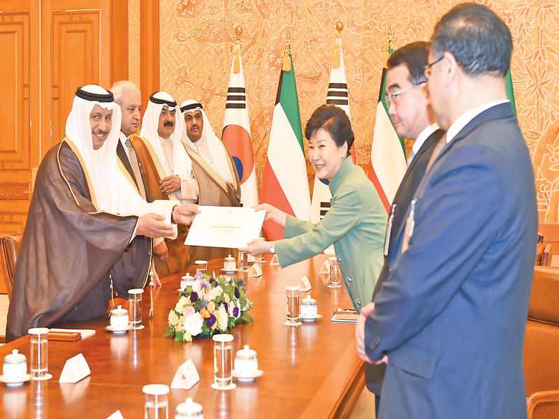 التقى سمو الشيخ جابر المبارك رئيس مجلس الوزراء في القصر الرئاسي "البيت الأزرق" أمس مع رئيسة جمهورية كوريا بارك كون هيه، حيث سلمها رسالة خطية من صاحب السمو أمير البلاد الشيخ صباح الأحمد تتعلق بالعلاقات الثنائية المتميزة بين البلدين، وسبل تطويرها في شتى المجالات.ونقل سموه خلال اللقاء تحيات وتمنيات صاحب السمو أمير البلاد، وسمو ولي العهد الشيخ نواف الأحمد لجمهورية كوريا وشعبها الصديق المزيد من التقدم والازدهار.وكان سموه عبّر في كلمة له بسجل الشرف للقصر الرئاسي عن امتنانه وتقديره للحفاوة البالغة وكرم الضيافة التي لقيها والوفد المرافق منذ وصوله، والتي تعبر عن عمق العلاقات الوطيدة بين البلدين.حضر اللقاء أعضاء الوفد الرسمي المرافق لسموه.من جهة أخرى، عقد المبارك في مقر رئاسة الجمهورية بالعاصمة الكورية سيول أمس جلسة مباحثات رسمية مع رئيس وزراء جمهورية كوريا هوانغ كيو آن.وجرت المباحثات في أجواء ودية عكست عمق العلاقات المتينة والوطيدة بين البلدين الصديقين.كما تركزت المباحثات حول سبل دعم العلاقات الثنائية بين البلدين، وتعزيز آفاق التعاون في مختلف المجالات، خصوصا الاقتصادية والتجارية والاستثمارية التي تخدم مصالح الشعبين.كما تطرقت المباحثات أيضاً إلى القضايا الإقليمية والدولية وموقف البلدين تجاهها، وسبل تحقيق السلام والاستقرار في العالم، خصوصاً في منطقة الشرق الأوسط، إضافة إلى التأكيد على التعاون المشترك في مواجهة الإرهاب، والحد من آثاره وتداعياته. وعقب جلسة المباحثات، بحضور سمو رئيس مجلس الوزراء ورئيس وزراء جمهورية كوريا، احتفل البلدان بالتوقيع على عدد من الاتفاقيات ومذكرات التفاهم. ووقع وزير الدولة لشؤون الإسكان ياسر أبل على مذكرة تفاهم في مجال المدن الذكية، ووقعها عن الجانب الكوري وزير الأراضي والبنية التحتية والنقل كانغ هوين.كما وقع وكيل وزارة الصحة الدكتور خالد السهلاوي على مذكرة تفاهم بشأن الخدمات الطبية والخطة التنفيذية للبرنامج الكوري للتدريب الطبي، ووقعهما عن الجانب الكوري رئيس معهد تنمية كوريا لصناعة الصحة لي يونغ.ووقع نائب رئيس مجلس الإدارة الرئيس التنفيذي لمؤسسة البترول الكويتية نزار العدساني على مذكرة تفاهم للتعاون بين كوريا غاز ومؤسسة البترول الكويتية، بينما وقعها عن الجانب الكوري الرئيس التنفيذي للمؤسسة العامة للغاز، ومذكرة تفاهم في مجال النفط والغاز وصناعة الطاقة وقعها عن الجانب الكوري نائب رئيس لجنة الطاقة في (إس كي) (س.ث) جون جول كل.كما وقع وزير التربية وزير التعليم العالي د. بدر العيسى على مذكرة تفاهم في المجال التربوي، ووقعها عن الجانب الكوري نائب رئيس مجلس الوزراء وزير التربية لي جون سك.حضر المباحثات من الجانب الكويتي أعضاء الوفد الرسمي المرافق لسموه، وحضرها عن الجانب الكوري عدد من الوزراء وكبار المسؤولين في القطاعات الاقتصادية والتجارية.وأقام رئيس وزراء جمهورية كوريا الجنوبية هوانغ كيو آن مأدبة غداء رسمية على شرف سمو الشيخ جابر المبارك والوفد المرافق.وأكد المبارك أن اتفاقية الشراكة بين الكويت وجمهورية كوريا الموقعة بين البلدين أمس والمتعلقة بالرعاية السكنية تأتي تأكيداً من الحكومة للمساهمة في حل القضية الإسكانية، وذلك بالإسراع في تنفيذ الوحدات السكنية وتقليل فترات الانتظار للمواطنين بالدرجة الأولى.وبين سموه في تصريح صحافي أن الاتفاقية تتضمن تأسيس شركة بين حكومتي الدولتين بشكل مباشر، هدفها إقامة وإنشاء مدينة جنوب سعدالعبدالله التي تضم أكثر من 30 ألف وحدة سكنية وتمتد على نطاق جغرافي يصل إلى 59 كيلومترا مربعا.وأضاف أن مدينة جنوب سعدالعبدالله ستكون أول مدينة ذكية وصديقة للبيئة في الكويت ومتماشية مع المعايير العالمية، وهو ما يثبت التزام الكويت باتفاقية المناخ الدولية التي تم التوقيع عليها في الأمم المتحدة الشهر الماضي.وذكر المبارك أن الاتفاقية الثنائية بين حكومتي الكويت وجمهورية كوريا ستكون مثالا يحتذى به في ال