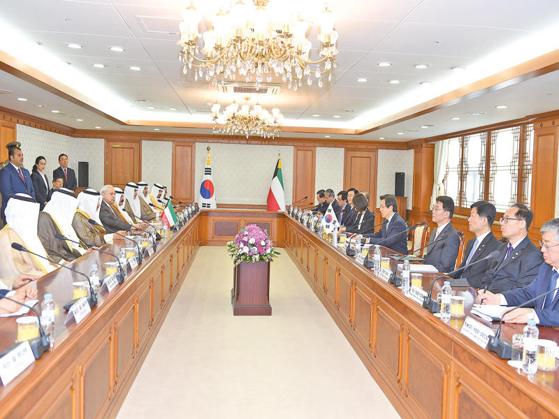 أفضت المباحثات الرسمية بين سمو رئيس الوزراء والمسؤولين الكوريين إلى توقيع اتفاقيات تعاون، أبرزها تأسيس شركة لإنشاء مدينة جنوب سعد العبدالله السكنية.
