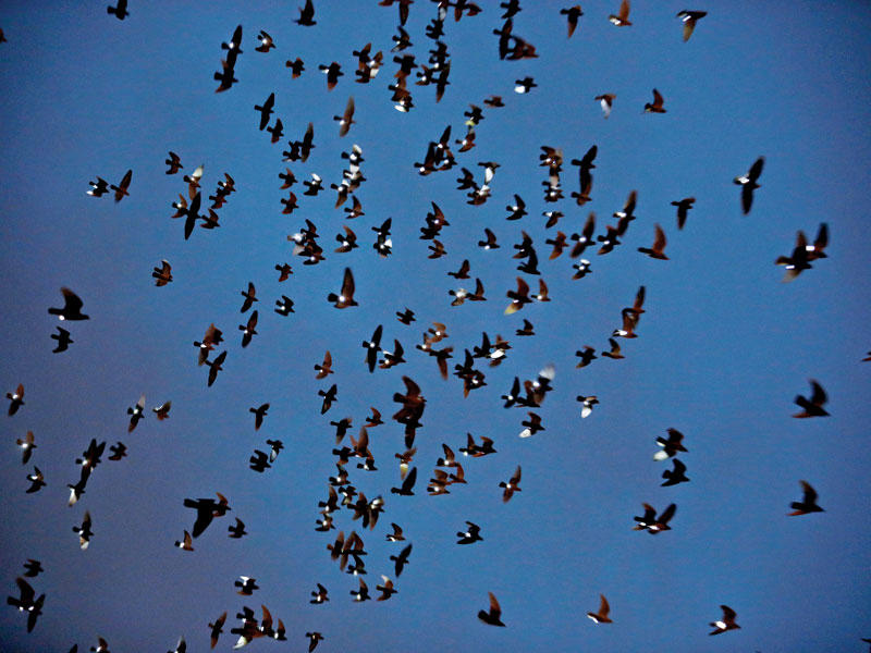 أضاءت سماء نيويورك آلاف من طيور الحمام المزودة بمصابيح "ليد" صغيرة مثبتة بأرجلها في عرض مبهر جذب أنظار سكان نيويورك، الذين كانوا يعرفون الكثير عن العرض.وما إن حل المساء على ساحة البحرية في بروكلين - التي كانت يوماً موقعاً لأكبر "أسطول" من الحمام الزاجل، الذي تستخدمه البحرية آنذاك- فتح الفنان ديوك رايلي باب حظيرة ضخمة للحمام لبدء العرض الذي أطلق عليه اسم "الطيران ليلاً".