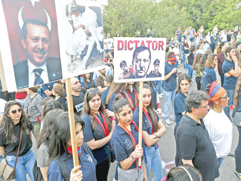 وفي محاضرته في الجامعة، استعرض باسيل الأخطار التي يواجهها لبنان وأولها برأيه «الصهيونية»، مؤكداً أن تياره «دعم حزب الله ضد إسرائيل، ولم ولن ندعمه ضد الدروز أو السنة أو أي طائفة».وقال إن تياره «دفع الغالي ثمن تفاهمه مع حزب الله ورغم تفاعلنا الصادق مع السنة بعد اغتيال (رئيس الحكومة الراحل رفيق) الحريري تمّ إقصاؤنا».وبرأي باسيل، فإن الإرهاب الذي «يريد أن يحتل قرانا عرسالنا وطرابلسنا جبالنا وشواطئنا ليتسلل عبر البحار لاحتلال الأرض والعقول» يحتل المرتبة الثانية، موضحاً أن «الخطر الثالث هو النزوح واللجوء».ورأى وزير الخارجية أن «رابع هذه الأخطار هو الفساد»، مشدداً على أن «الفاسدين من كل المناطق والطوائف، وعلينا جميعاً مواجهتهم دون إلصاق اسم طائفة بشخص أو فريق فاسد وهذا الفساد».ريفي وفي بيان، اعتبر وزير العدل المستقيل أشرف ريفي أن «وزير الخارجية جبران باسيل طالعنا خلال زيارته لطرابلس ببعض المواقف التي أقل ما يقال إنها تشكل استخفافاً بأهل المدينة، وباللبنانيين».وتابع ريفي: «باسيل قال، إن فريقه دعم المقاومة بوجه إسرائيل وليس بوجه السنة والدروز، متناسياً دعم رئيس تكتل التغيير والإصلاح النائب ميشال عون لحزب الله في 7 أيار، حيث اجتاحت ميليشيات الحزب وحلفاؤه بيروت والجبل، وارتكبت جريمة كبرى، فيما كان العماد عون وباسيل نفسه يعبرون عن الدعم والابتهاج».وأشار ريفي إلى أن «وثائق ويكيليكس كشفت أنواعاً أخرى من التحريض أشد خطورة على النسيج الوطني، واسقاط حكومة سعد الحريري من الرابية، كان أيضاً في سياق الانقلاب المستمر، الذي قاده حزب الله على الدولة والمؤسسات، والذي شارك فيه العماد عون ولا يزال».ولفت إلى أن «طرابلس، التي يزورها باسيل اليوم، تتعرض لمحاولات دائمة لزرع ما يسمى بسرايا المقاومة، التي يسعى حليفه حزب الله إلى تعميمها كأداة لنشر سلاح الفوضى والفتنة».وعن كلام باسيل عن «التعاطف مع السنة لدى اغتيال الحريري»، قال: «السنة في لبنان لا يحتاجون العطف، بل هم موجودون ومستمرون في قلب مشروع لبنان أولاً، الذي استشهد من أجله الحريري، هم أقوياء في انتسابهم لمشروع الدولة، وليس بالاستقواء بسلاح ميليشياوي لتحقيق المكاسب الشخصية الزائلة، هم أقوياء بإيمانهم بالشراكة الإسلامية المسيحية، وليس بأوراق التفاهم التي تغطي الدويلة لحساب الطموح الرئاسي»، معتبراً أن «من يحتاج العطف لا بل الشفقة، هو من باع قضيته بثلاثين من الفضة، وباع دم الشهداء، وانقلب على ذاته، لتحقيق هدف لن يتحقق».في سياق آخر، وفي حادثة تظهر تفلت الأمن في بعض المناطق ذات الصبغة الحزبية، انتشر مسلحون في محلة الليلكي في الضاحية الجنوبية لبيروت، حيث اندلعت اشتباكات مسلحة في شارع الإمام علي بين أفراد من عائلة زعيتر بكافة أنواع الأسلحة، ما أدى الى احتراق سيارة وتضرر بعض المنازل، لكن ما لبث أن عاد الأمن إلى منطقة الليلكي، بعد وصول الجيش اللبناني.الإبادة الأرمنيةوأحيا الأرمن في لبنان، أمس، الذكرى الـ101 لـ«الإبادة الأرمنية». وأشار القيادي في «القوات اللبنانية» ريشار قيومجيان، إلى أنه «لا غاية سياسية لإحياء القوات ذكرى الإبادة الأرمنية في معراب» مساء أمس الأول، مشيراً إلى أن « خصوصية الأرمن أنهم حافظوا على هويتهم الإثنية من لغة ودين، لكن هذه الهوية تتكامل مع الهوية اللبنانية ولا تنقضها».