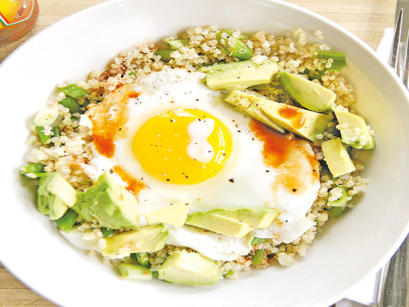 لكن الكينوا خيار منطقي أيضاً على الفطور ليس لأنّه أهم وجبة في اليوم، بل لأن هذه البذور اللذيذة التي تنتمي إلى عائلة السرمق وتشمل الشمندر والسبانخ والسلق تكون مغذّية جداً.تشكّل الكينوا المطبوخة عند خلطها مع قليل من البيض عجينة مدهشة لتحضير الفطائر. عند إضافتها مع مجموعة من الخضراوات والجبنة المفتتة إلى البيض المخفوق، ستحصلين على مافن لذيذ وجاهز للأكل على الفطور. يمكنك تناولها وحدها أيضاً أو سكب بيضة مقلية عليها مع كمية من الصلصة الحارة.كميزة إضافية، تخلو الكينوا أيضاً من الغلوتين. لذا تكون خياراً ممتازاً للمصابين بالداء البطني أو بحساسية تجاه الغلوتين والقمح وغيرهما من منتجات غذائية عشبية. للمرة الأولى منذ فترة طويلة، تمكّن ابني من الاستمتاع بفطيرة من دون القلق بشأن الآثار الجانبية المحتملة.الكينوا غنية أيضاً بالكالسيوم والحديد والألياف والبوتاسيوم وتشكّل مصدراً ممتازاً لحمض الفوليك والمغنيسيوم والفيتامين B6 والثيامين والنياسين والبوتاسيوم والريبوفلافين، ويمكن الحصول على هذه المغذيات كلها مقابل 200 سعرة حرارية في الكوب.تأتي الكينوا بألوان متنوعة (أحمر، أسود، أبيض) ويتراوح سعرها بين المكلف بشكل مقبول والمكلف جداً. يمكن توزيعها فوق الأطباق لزيادة قرمشتها واستهلاك أليافها أو يمكن تناولها وحدها.لطبخ الكينوا، أضيفي حصة من الحبوب إلى حصتين من السائل في طنجرة. اغليها ثم خففي النار وغطّيها ودعيها على نار خفيفة، مدة 15 دقيقة، إلى أن تصبح الحبوب طرية. ستعرفين أنها نضجت بما يكفي حين تصبح الحبوب شفافة. يمكنك تحضيرها أيضاً في طنجرة الأرز.لا تنسي أن تصفّيها حين تنضج (الكينوا تحبس الماء) وتأكدي من غسل البذور في المصفاة قبل طبخها وإلا ستبقى نكهتها مُرّة.وعاء كينوا مع البيض والأفوكادو• 4 أغصان من البصل الأخضر المقطّع إلى شرائح رفيعة.• كوبان من الكينوا المطبوخة.• ملعقة صغيرة من الخل.• ملح كوشير.• فلفل مطحون حديثاً.• 3 ملاعق كبيرة من زيت الزيتون.• 4 بيضات كبيرة.• حبة أفوكادو مفرومة.• صلصة حارة (عند تقديم الوعاء).الطريقة:• اخلطي البصل الأخضر مع الكينوا والخل في وعاء صغير، ثم تبّلي الخليط بالملح والفلفل. أضيفي ملعقتين كبيرتين من الزيت واخلطي المقادير جيداً.• سخّني الملعقة المتبقية من الزيت في مقلاة غير لاصقة على نار متوسطة أو مرتفعة. افقسي البيض في المقلاة ثم تبّلي الخليط بالملح والفلفل واطبخيه إلى أن يتوزع الزلال على الأطراف، مدة دقيقة تقريباً. اقلبي البيض واطبخيه بالدرجة التي تفضّلينها، طوال 30 ثانية إذا أردت أن يسيل الصفار.• وزعي الكينوا على أربعة أوعية. فوق كل وعاء ضعي بيضة مقلية مع الأفوكادو وكمية من الصلصة الحارة.فطيرة بالهليون المشويكنت أشك في أن تسمح الكينوا بتحضير عجينة مقرمشة لكنها نجحت فعلاً. تتطلب هذه الوصفة هليوناً مشوياً لكني أتوقع أن ينجح أي نوع من الخضراوات في خليط البيض بإنتاج تركيبة رقيقة وقشدية في الوقت نفسه.المقادير:• 10 إلى 12 ضلع من الهليون.• زيت زيتون.• ملح كوشير، وكمية إضافية للحشوة.• فلفل أبيض مطحون، وكمية إضافية للحشوة.العجينة:• كوبان من الكينوا المطبوخة والمبرّدة.• ثِمن ملعقة صغيرة من الفلفل الأسود المطحون.• بيضة كبيرة ومخفوقة.• رذاذ الطبخ. الحشوة:• بيضتان.• صفار بيضتين.• كوب من الكريما الثقيلة.• كوب من الحليب كامل الدسم.• نصف ملعقة صغيرة من ملح كوشير.• نصف ملعقة صغيرة من الفلفل الأبيض المطحون.• ثِمن ملعقة صغيرة من جوزة الطيب المطحونة.• ثلثا كوب من جبنة الغرويير أو أي جبنة سويسرية.الطريقة:• سخني الفرن مسبقاً على حرارة 176 درجة مئوية.• انزعي أطراف ضلوع الهليون إذا كانت صلبة، ثم ضعيها في صينية ورشّي عليها زيت الزيتون ثم الملح والفلفل. اخلطيها قليلاً بيديك لتغطية الضلوع بالتساوي، ثم وزعيها على شكل طبقة في الصينية. اشويها بين 15 و20 دقيقة. برّديها ثم افرميها إلى قطع بحجم إنش. ضعيها جانباً.• تحضير العجينة: اخلطي الكينوا والفلفل والبيض في 