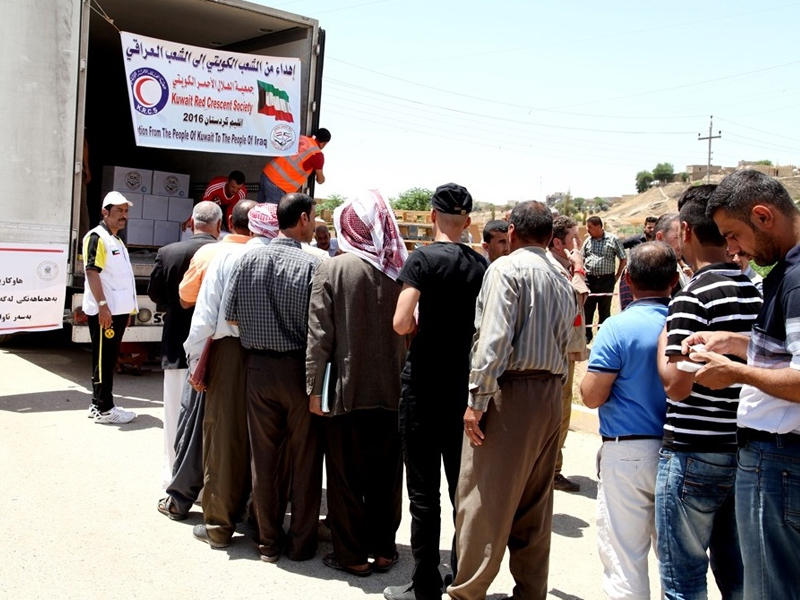 «الهلال الأحمر الكويتي» يوزع 1800 سلة غذائية على النازحين بإقليم كردستان