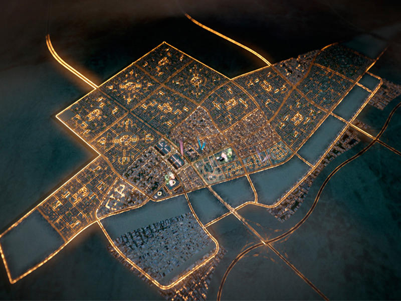وتابع ان تنفيذ البنية التحتية وتحديد القسائم للضاحيتين N1 & N4 تضم 4996 قسيمة، والضاحيتين N2 &N3 تضم 4848 قسيمة للمطورين العقاريين، وكذلك إنشاء محطات الكهرباء الرئيسية ومحطات المحولات، إضافة إلى العديد من المباني العامة.
