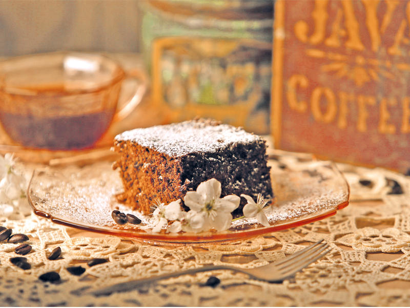 • حمي الفرن على حرارة 170 درجة مئوية.• اخلطي الطحين مع السكر، صودا الخبز، القرفة، والبهار، واحرصي على أن تنخلي هذه المكونات مرتَين. اخفقي البيض مع الزبدة الذائبة الباردة وأضيفي ثلث الخليط إلى المكونات الجافة وتابعي الخفق. أضيفي بعد ذلك نصف كمية القهوة ونصف كمية الدبس وواصلي الخفق. أضيفي ثلث خليط الزبدة والبيض وتابعي الخفق. أضيفي ما تبقى من قهوة ودبس ولا تتوقفي عن الخفق. أضيفي بعد ذلك ما تبقى من الزبدة والبيض وتابعي الخفق. وأخيراً، أضيفي الزبيب والكشمش.• صبي الخليط في صينية خبز بقياس 22 سنتمتراً بـ33 سنتمتراً واتركيها في الفرن إلى أن تقحمي مسواكاً في وسط الكيك ويخرج نظيفاً، نحو 45 دقيقة إلى ساعة.في الحصة: 602 سعرة حرارية، 13 غراماً من الدهون، 8 غرامات من الدهون المشبعة، 77 مليغراماً من الكولسترول، 8 غرامات من البروتين، 116 غراماً من النشويات، 72 غراماً من السكر، 3 غرامات من الألياف، 147 مليغراماً من الصوديوم، و127 مليغراماً من الكالسيوم.