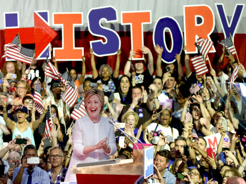 أمضى أنصار هيلاري كلينتون ليلة من البهجة العارمة احتفلوا خلالها بصنع التاريخ وساهمت في محو لحظات التشكيك في حلم بدا مستحيلاً من ذاكراتهم.قالت كلينتون في مستودع اكتظ بالأنصار الصاخبين في نيويورك «بفضلكم حققنا انجازاً كبيراً، فللمرة الأولى في تاريخ أمتنا تنال امرأة ترشيح حزب كبير».