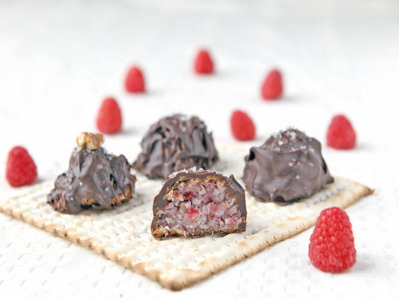 • كوبان من جوز الهند المقشور والمجفف والمُحَلى. • 3 ملاعق كبيرة من حبيبات السكر.• زلال بيضة كبيرة.• رشّة ملح خشن.• نصف كوب من التوت الأحمر الطازج.• 170 غراماً من الشوكولاتة نصف الحلوة والمفرومة.• ملعقتان كبيرتان من زيت جوز الهند (أو شراب الذرة).• جوز محمص، جوز هند محمص، سكر رملي، سكر ملوّن، ملح خشن... للزينة.الطريقة: