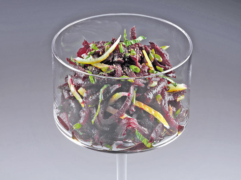 • 6 حبات شمندر طازجة.• 6 ملاعق كبيرة من النعناع الطازج والمفروم.• 6 ملاعق كبيرة من الثوم المعمر الطازج والمفروم.• 6 ملاعق صغيرة من برش الليمون.• 3 ملاعق صغيرة من مخلل الليمون المفروم (اختياري).• ملح وفلفل بحسب الرغبة.• 6 ملاعق صغيرة من زيت الزيتون.• 3 ملاعق صغيرة من عصير الليمون.الطريقة: