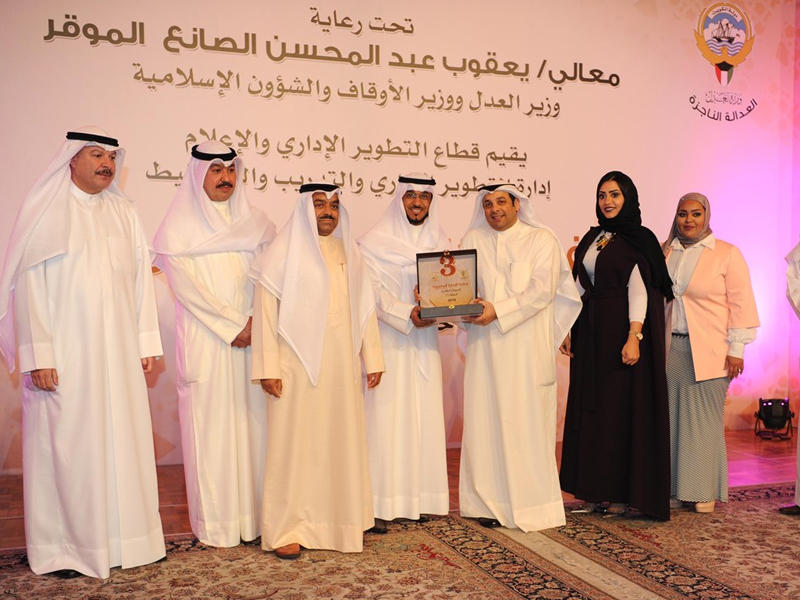 وأشار إلى «أن وزارة العدل بادرت في صياغة الخطة الإستراتيجية لها والتي ترتكز على منطلقات وسياسات الخطة الإنمائية لدولة الكويت إدراكاً منّا بأن صياغة الأنشطة وتطوير وتحسين الخدمات ينبغي أن يشارك فيها جميع الفئات بالوزارة وخارجها».وأكد «اننا نستهدف من ذلك تحقيق متحصلات تلبي توقعات وطموحات المتعاملين مع وزارة العدل وفق آليات متطورة نستخدم فيها كافة الوسائل والأساليب الحديثة التي تعظم من سبل تقديم الخدمة التي تحقق رضا العملاء». وشدد على أنه للقيادة السياسية وعلى رأسها حضرة صاحب السمو أمير البلاد صاحب اليد الطولى في تسخير كافة الإمكانيات في دعم العمل المؤسسي القائم على التطوير والتحسين الدائم وتتجلى دلائل ذلك برعاية وحضور سموه لافتتاح محكمة الرقعي في السادس من يونيو الجاري من أجل تحقيق شعار العدالة الناجزة وبما يساهم في رفعة وطننا الغالي وتقدمه.ولفت إلى أن تحقيق التميز المؤسسي ليس أمراً صعباً «فيجب أن نتذكر بأن منطقتنا التي خرج منها ابتكارات الجبر والحساب ومنها تخرج رواد العلوم في والكيمياء والرياضيات والهندسة وكما أخذت حضارتنا العربية والإسلامية الحضارات أعطتها وانتفعت بها جميع الثقافات والحضارات الأخرى».وأوضح أن المسؤولين في وزارة العدل يسعون بأن يكون التميز الحكومي يمثل المرحلة الجديدة التي نتطلع إليها في العمل الحكومي وترسم نهجاً استباقياً للعمل المستقبلي لكافة مجالات العمل بالوزارة خاصة بأننا قطعنا أشواطاً ناجحة في مسيرة العمل.وكرّم الوزير الصانع إدارات الوزارة الفائزة بالجائزة وبمختلف تصنيفاتها كما كرم فريق عمل الجائزة وعدد من الإعلاميين.